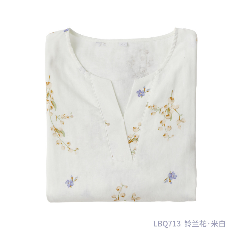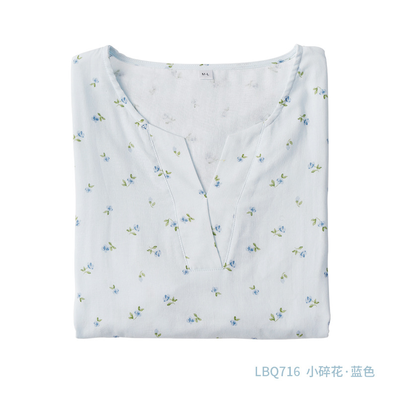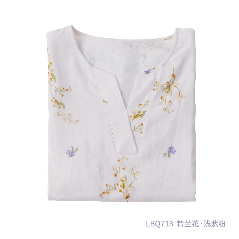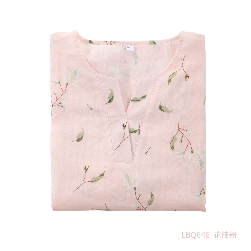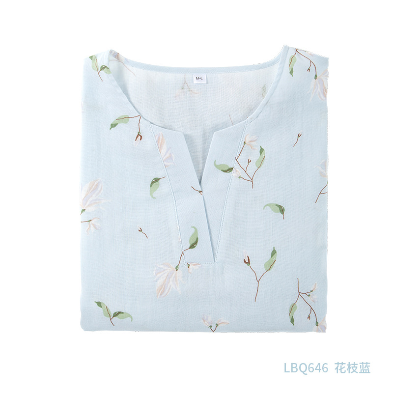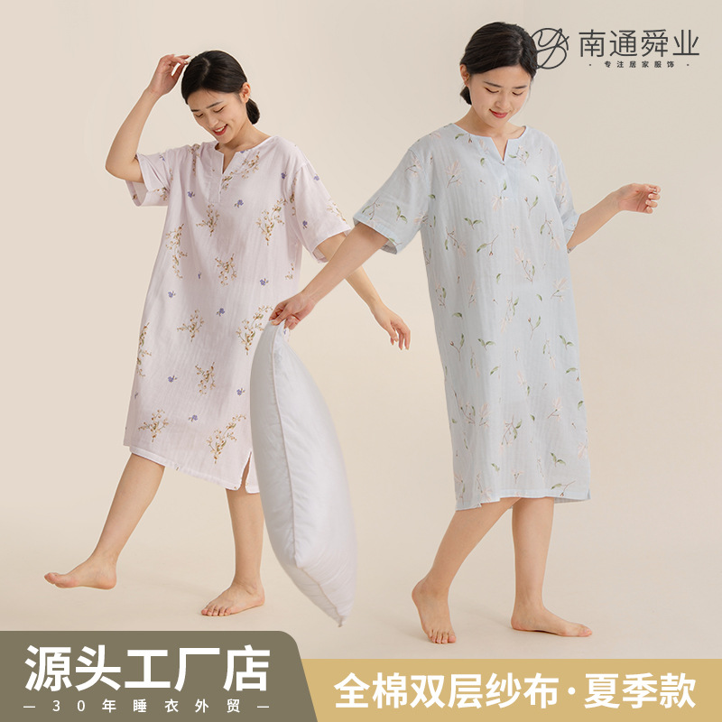 여성용 여름 반팔 면 원피스 잠옷, 순면 홈웨어, 이중 면사 여름용 큰 사이즈 잠옷 드레스스토어 가기