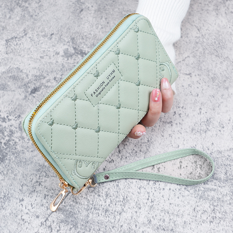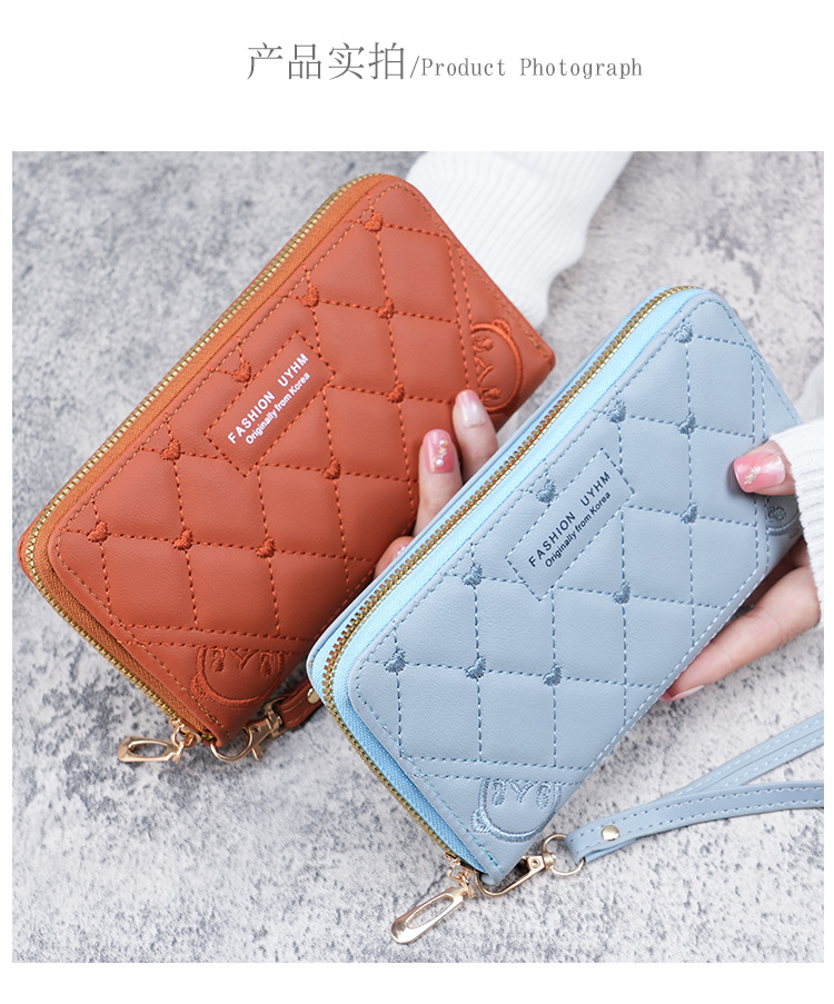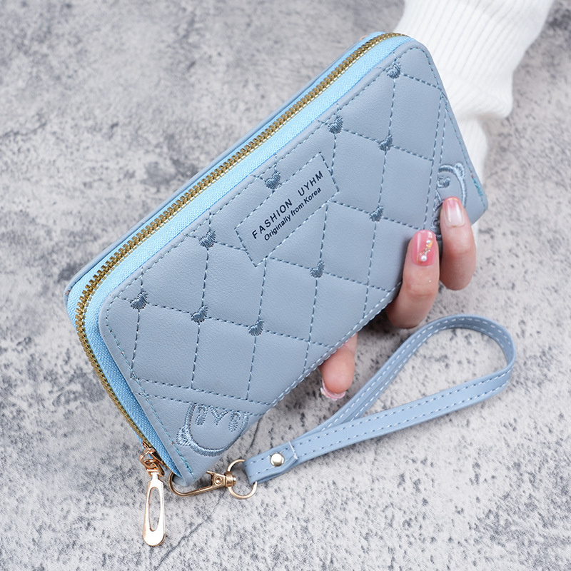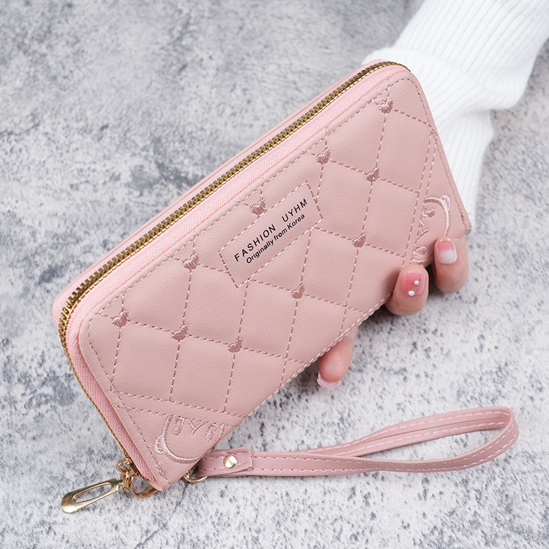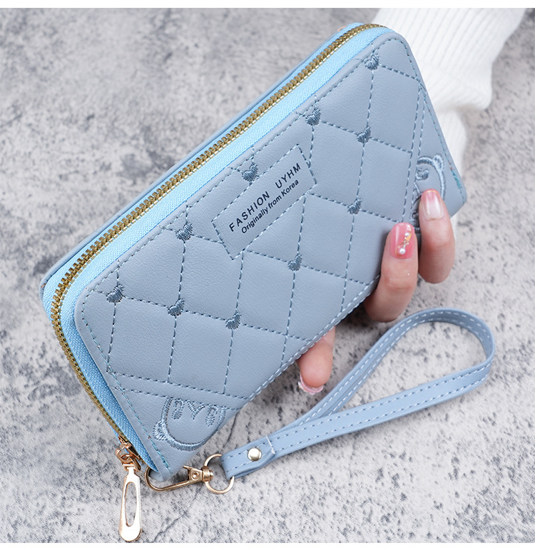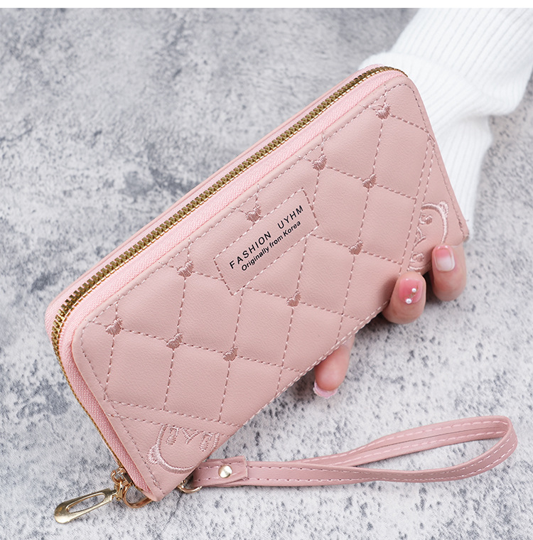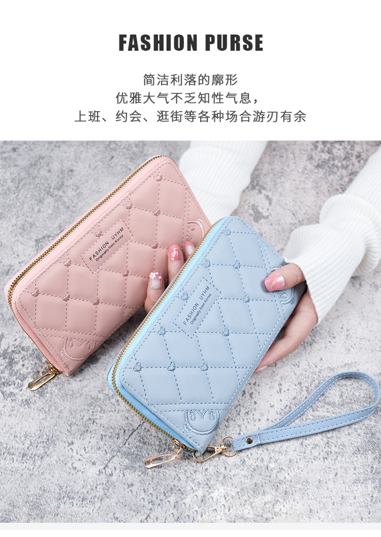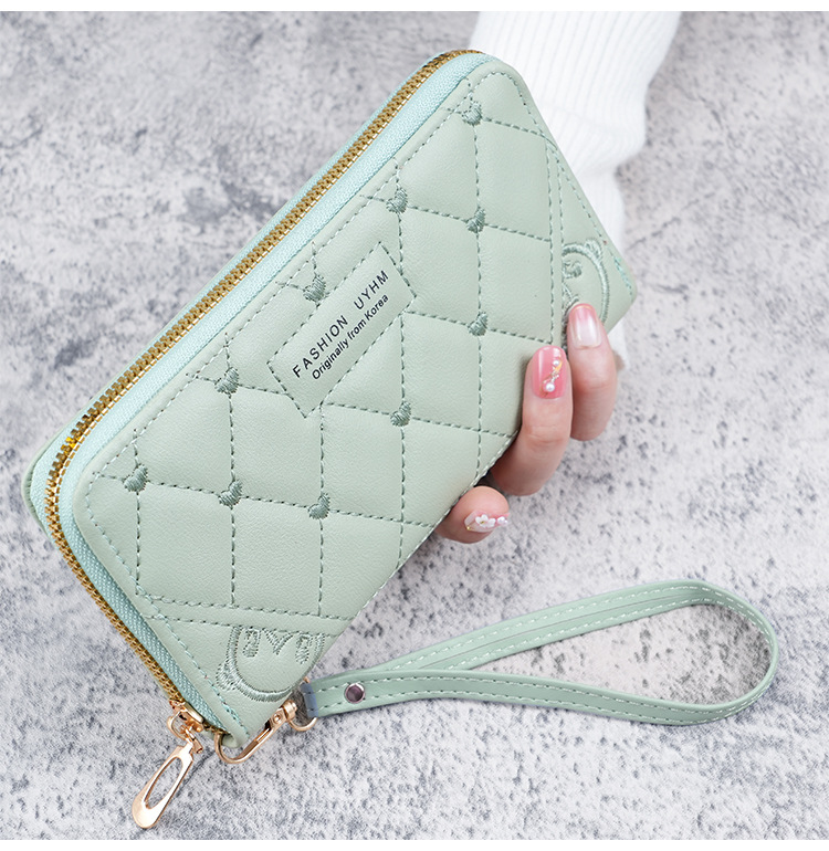 재고 2023 여름 새 핸드백 신선한 달콤한 중간 길이 여성 지갑 단색 PU 가죽 자수 지갑스토어 가기