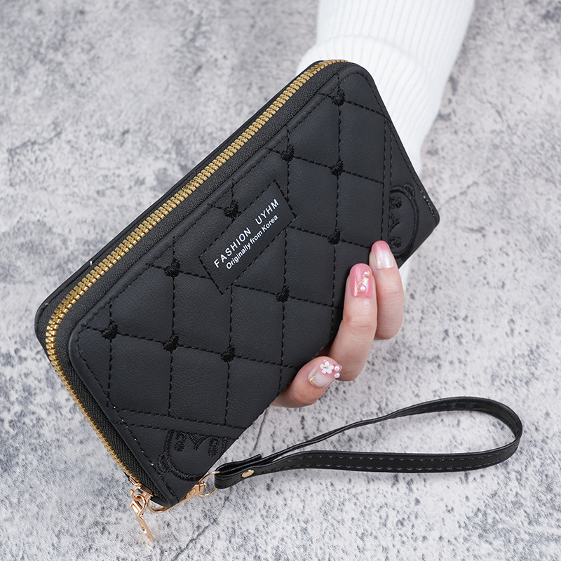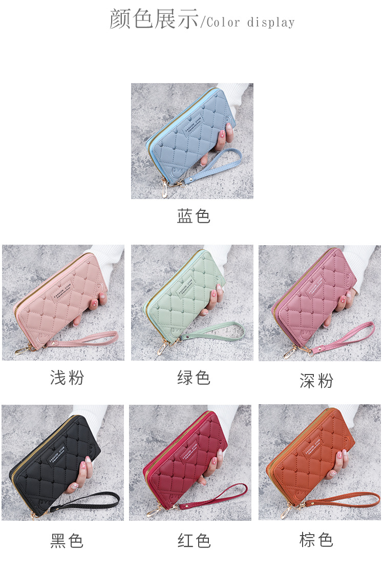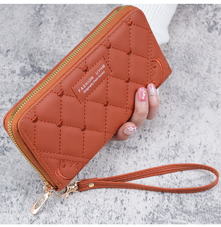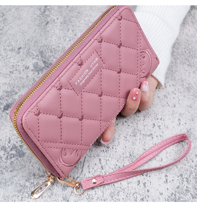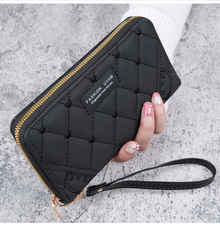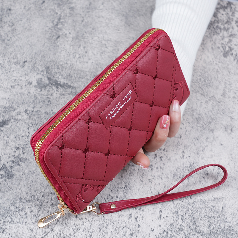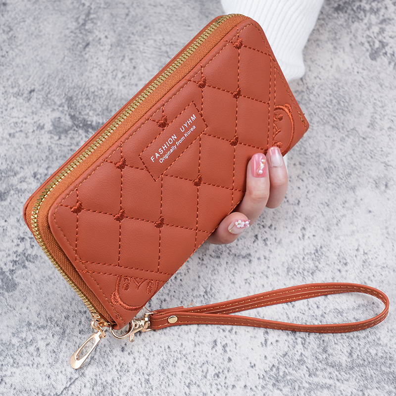 재고 2023 여름 새 핸드백 신선한 달콤한 중간 길이 여성 지갑 단색 PU 가죽 자수 지갑스토어 가기