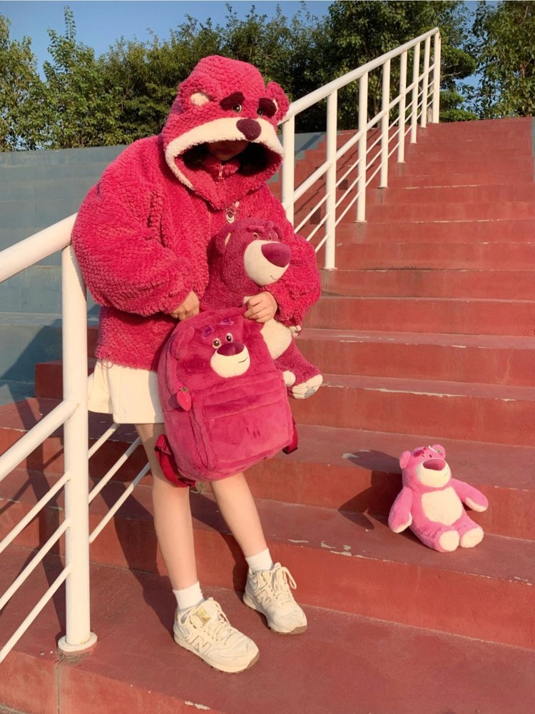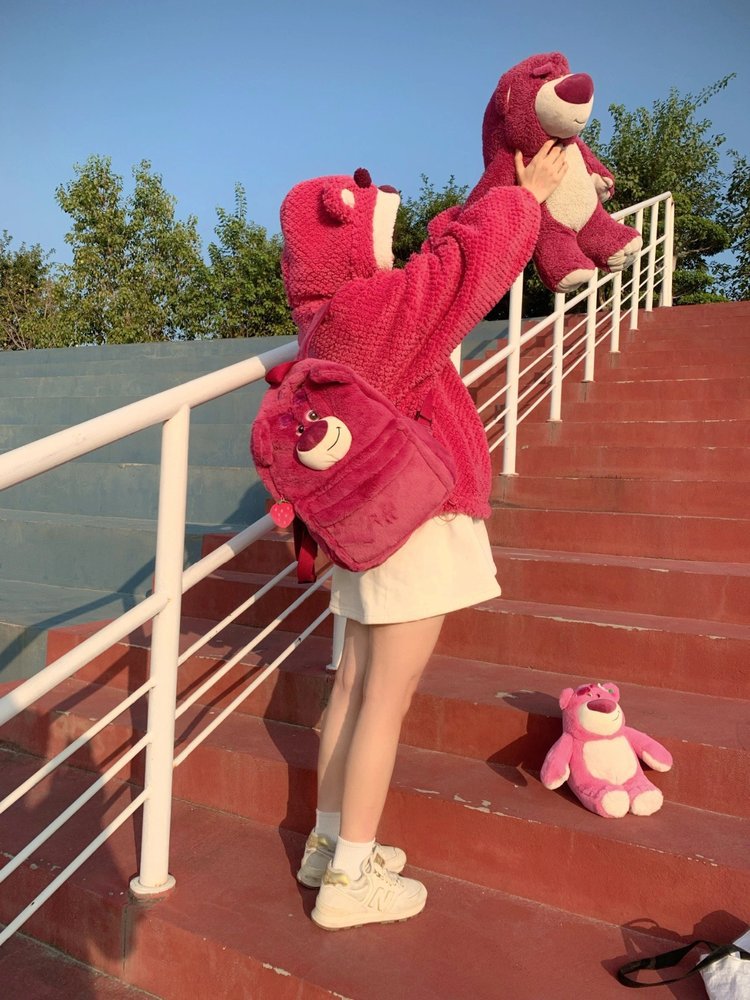 귀여운 딸기 곰 설리반 배낭 일본어 인 봉제 고등학교 중학교 학생 대용량 학교 가방스토어 가기