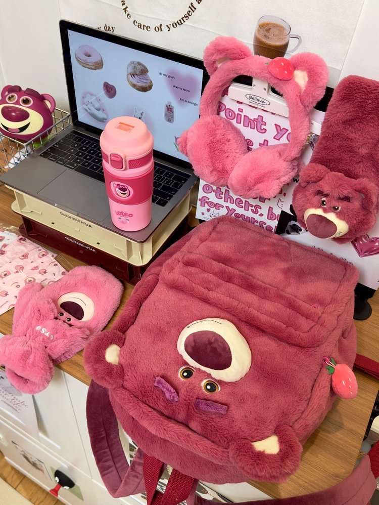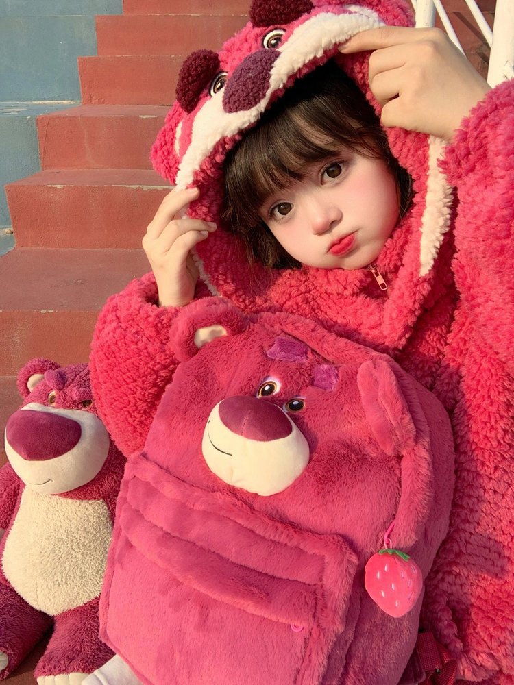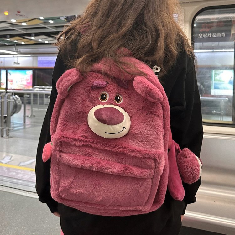 귀여운 딸기 곰 설리반 배낭 일본어 인 봉제 고등학교 중학교 학생 대용량 학교 가방