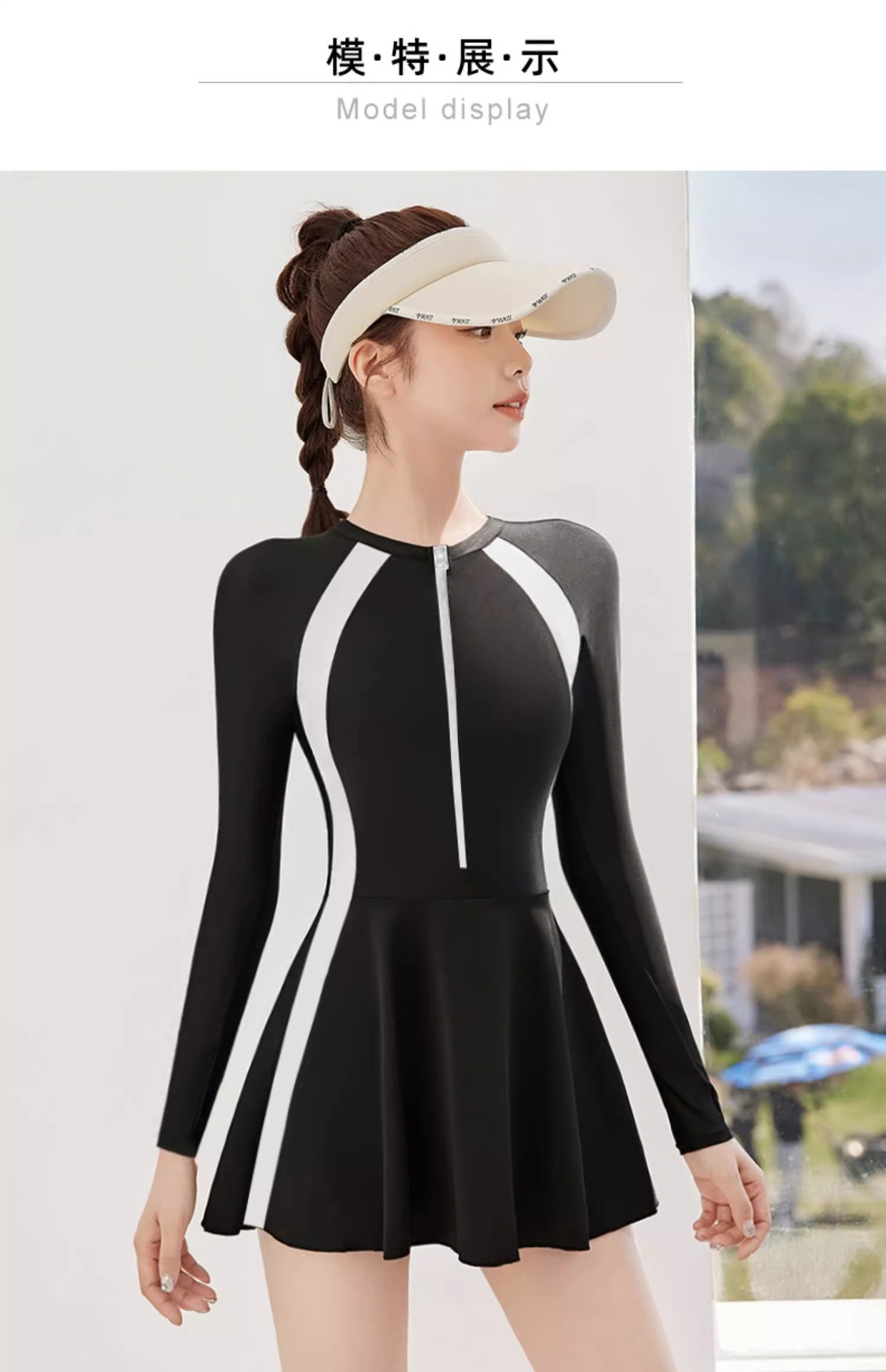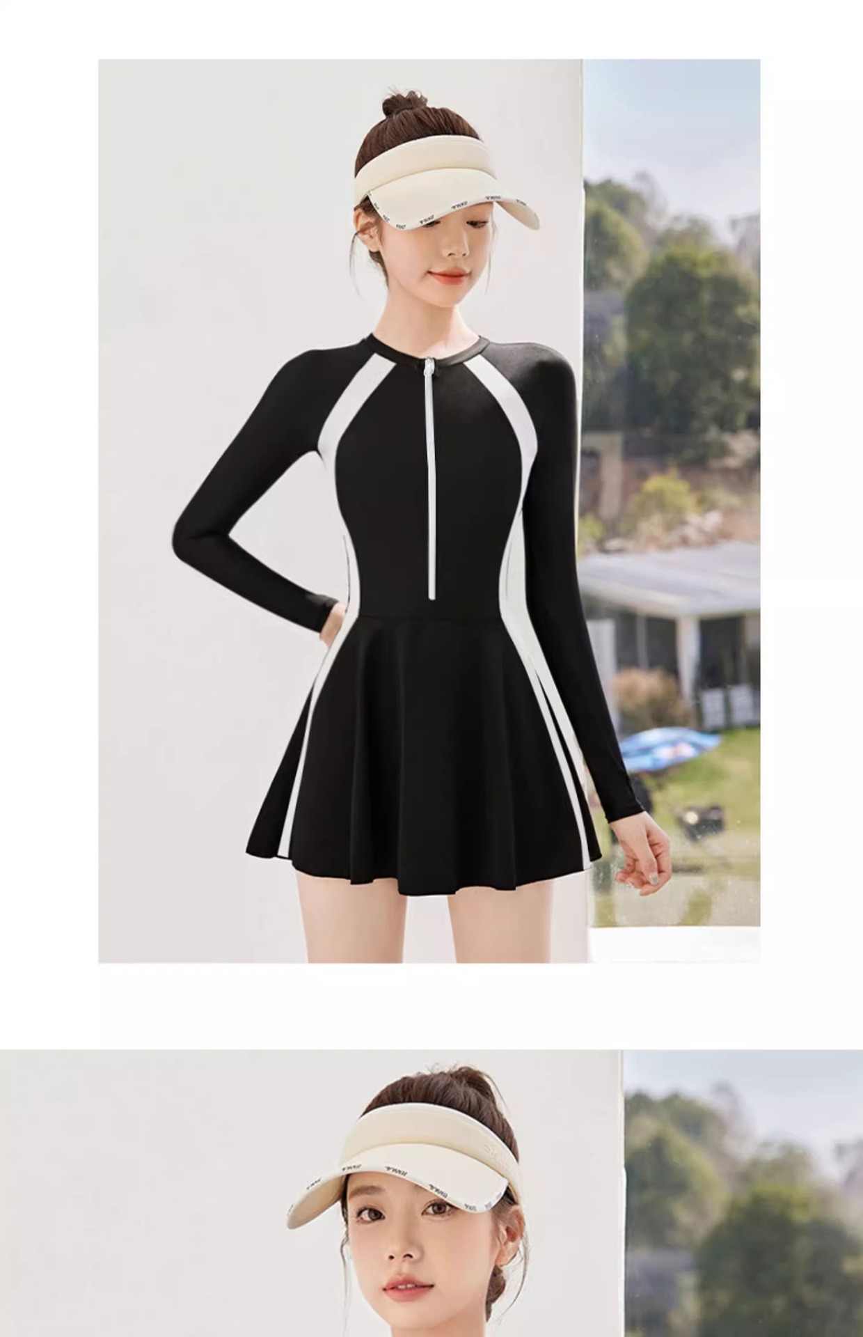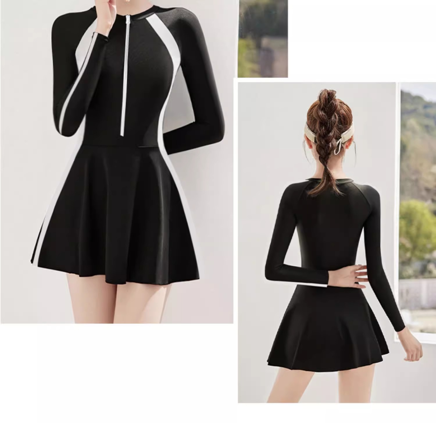 • 검정 배경 흰색 긴소매 [원바디 스커트]]