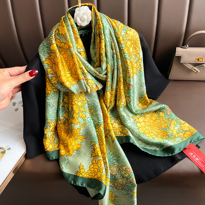 Li Brocade 새틴 신상품 브릴리언트 프린트 실크 스카프 여성용 스카프 자외선 차단제 숄 여름 비치 롱 스카프스토어 가기