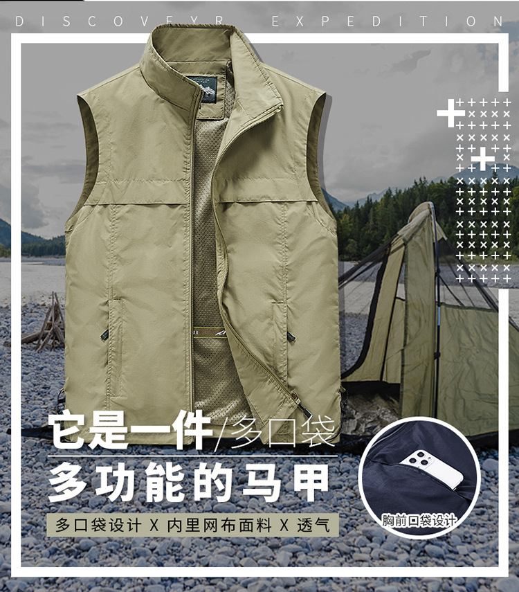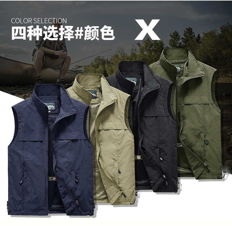 조끼 남자의 야외 휘슬 캐주얼 봄과 가을 얇은 사진 낚시 조끼 중년 및 노인 여름 조끼 작업 바지