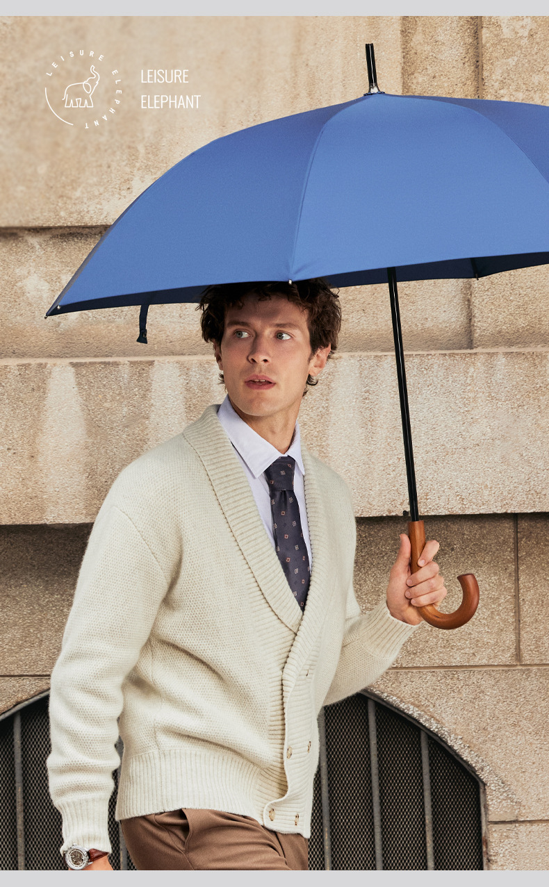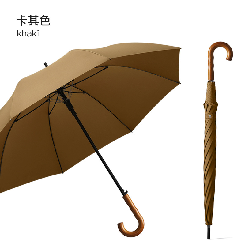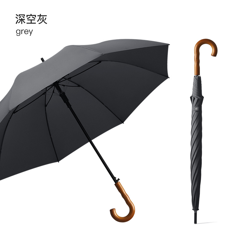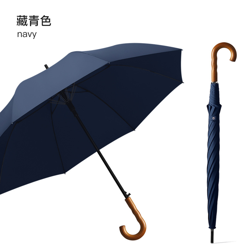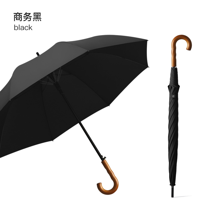 Xianxiang 곡선형 나무 손잡이 직선 우산, 방수 및 방풍 기능 강화, 두껍고 견고하며 폭풍에 강한 비즈니스용 긴 우산, 남성용 우산 재고 있음