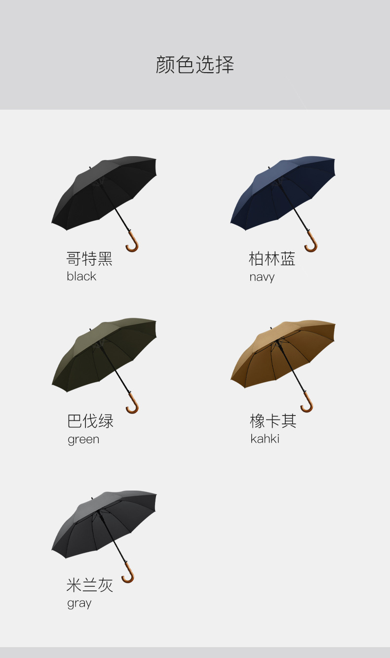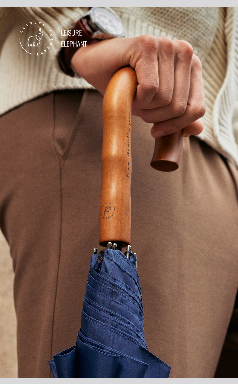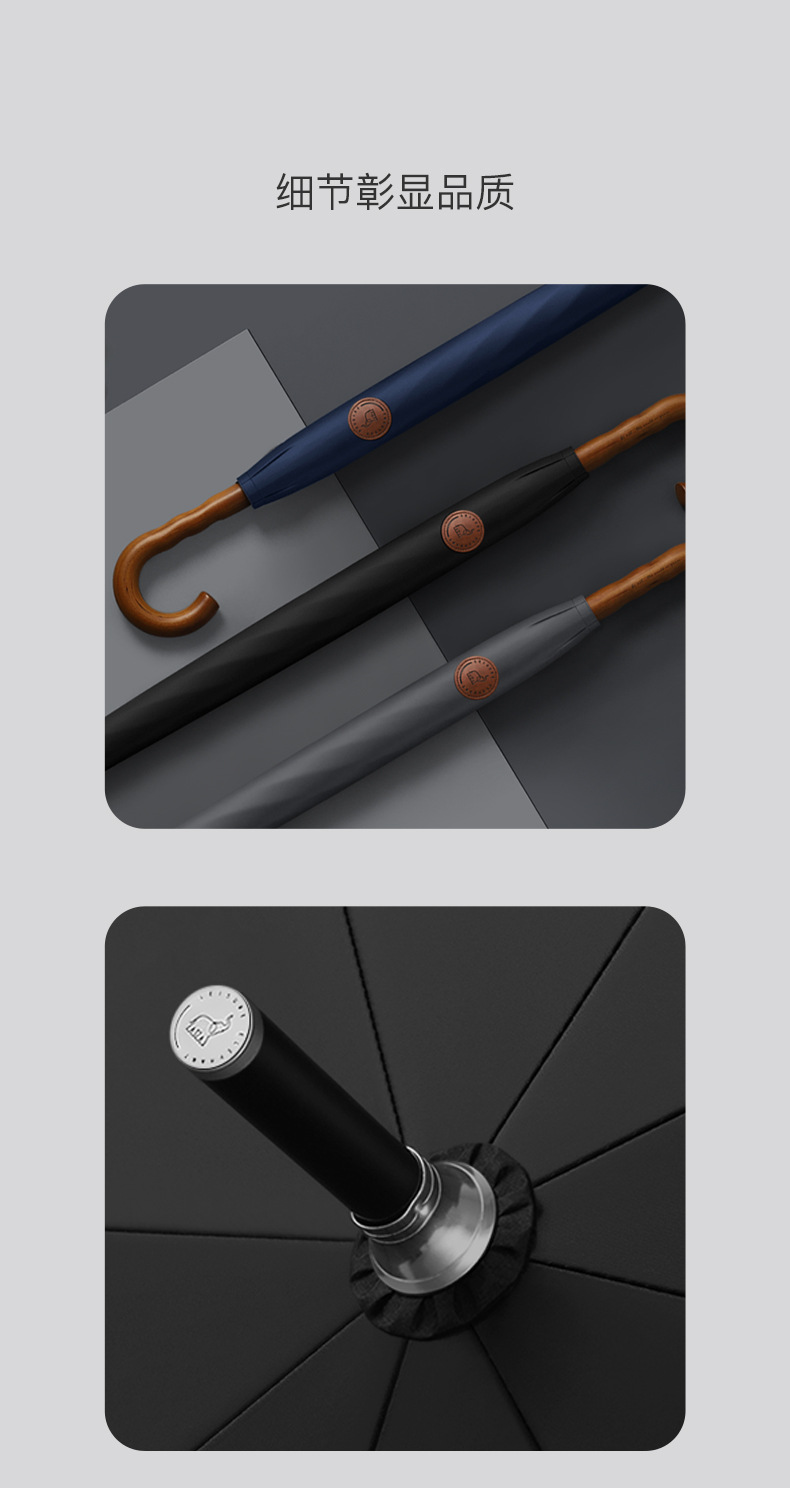Xianxiang 곡선형 나무 손잡이 직선 우산, 방수 및 방풍 기능 강화, 두껍고 견고하며 폭풍에 강한 비즈니스용 긴 우산, 남성용 우산 재고 있음