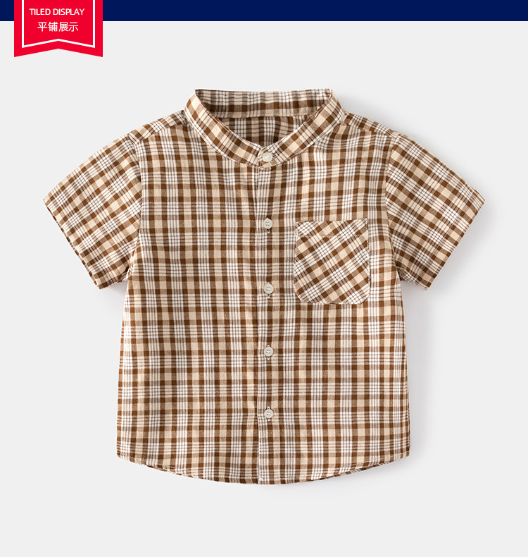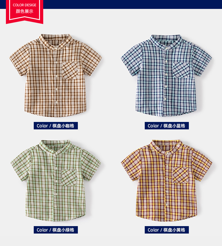 여름 홈 체스 판 작은 카페 격자 무늬 칼라 어린이 반팔 멋진 야외 여행 캐주얼 어린이 셔츠스토어 가기