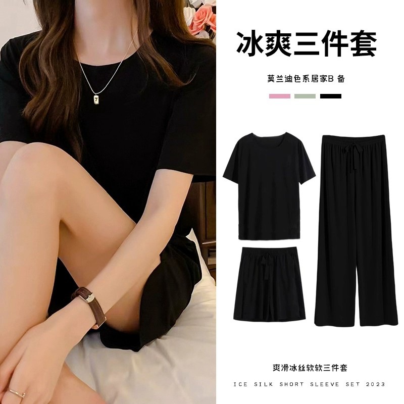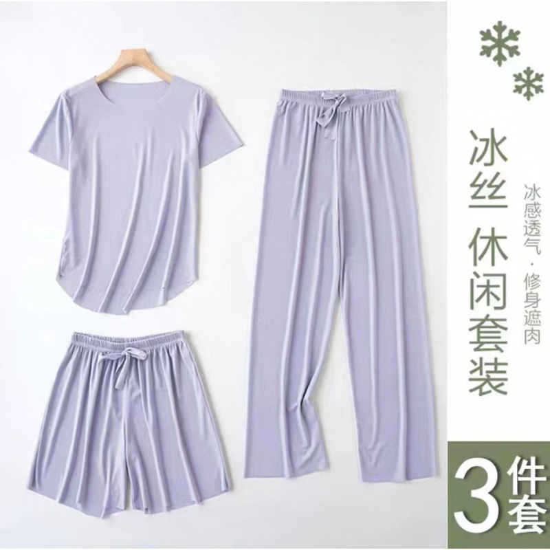 아이스퀸 3피스 여성 세트 2026 봄 여름 신상 루즈핏 여성 캐주얼 아이스 실크 부드러운 세트 홈웨어스토어 가기