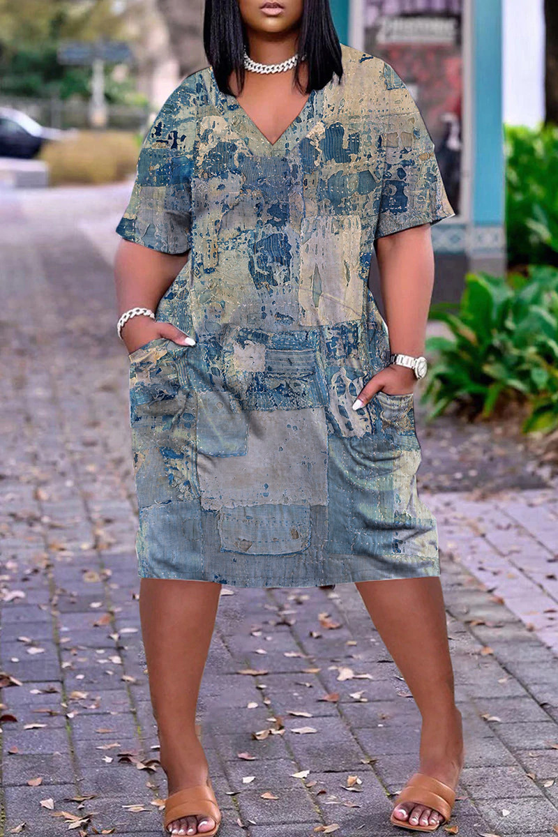 해외 무역 국경 간 2023 새로운 3D 디지털 인쇄 아마존 국경 간 유럽과 미국 도시 레저 느슨한 원피스 여성스토어 가기