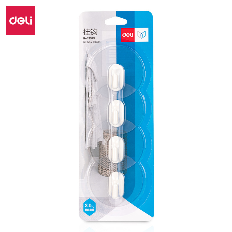 델리 19373-후크 벽 후크 접착 패치 펀치 없음 가정용 코트 후크 커튼 후크 벽 4 팩