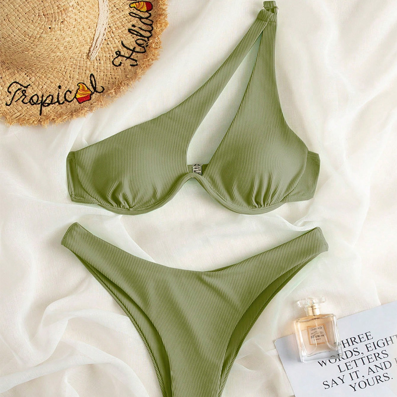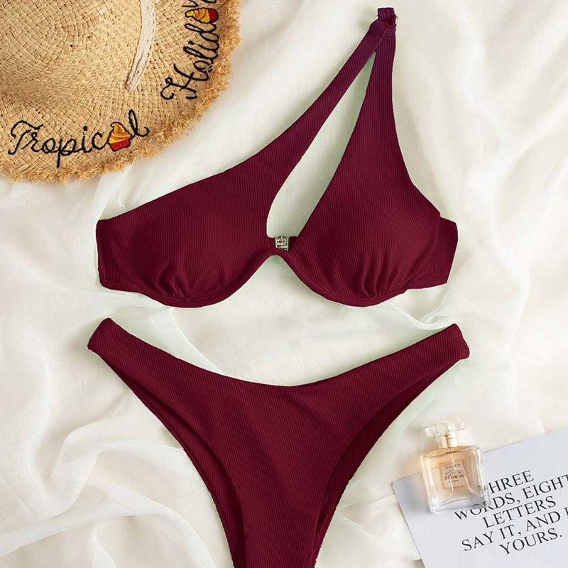 2026년 여름 신상 유럽 및 미국 스타일 멀티 컬러 섹시 트라이앵글 스플릿 수영복 여성용 원숄더 스틸 토 비키니 수영복