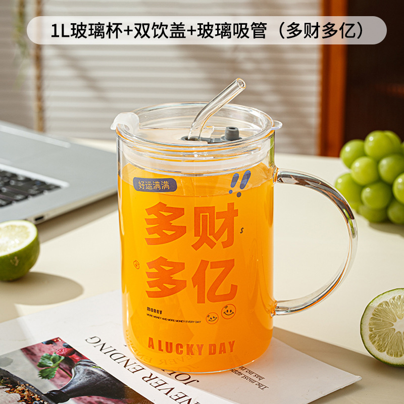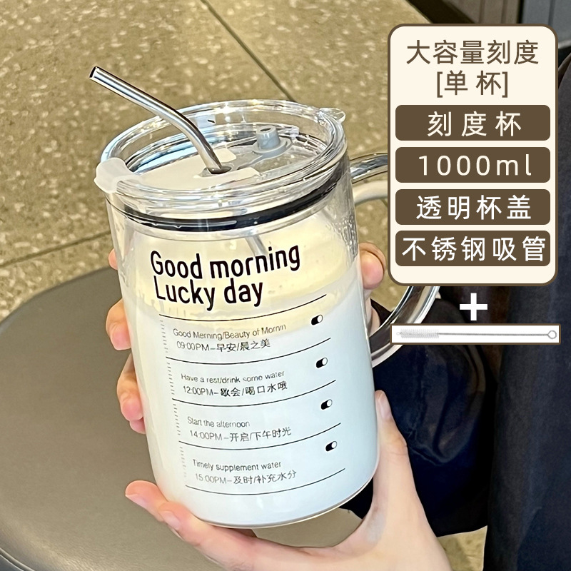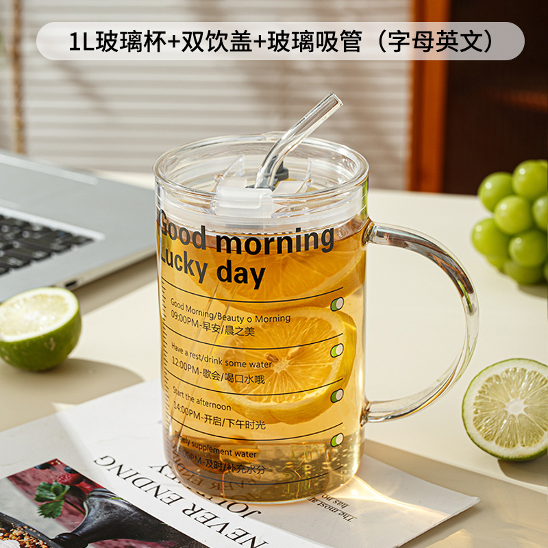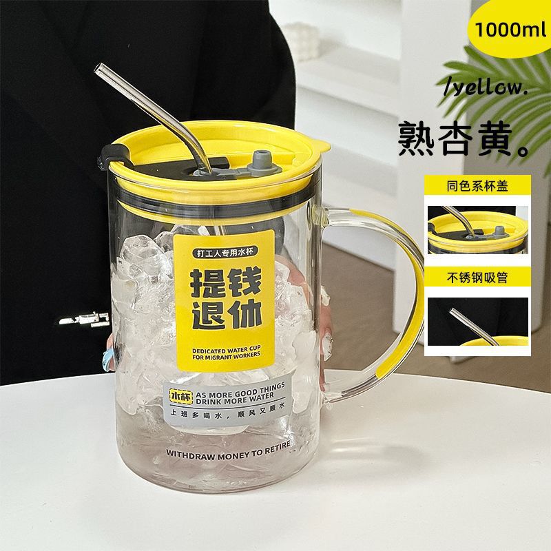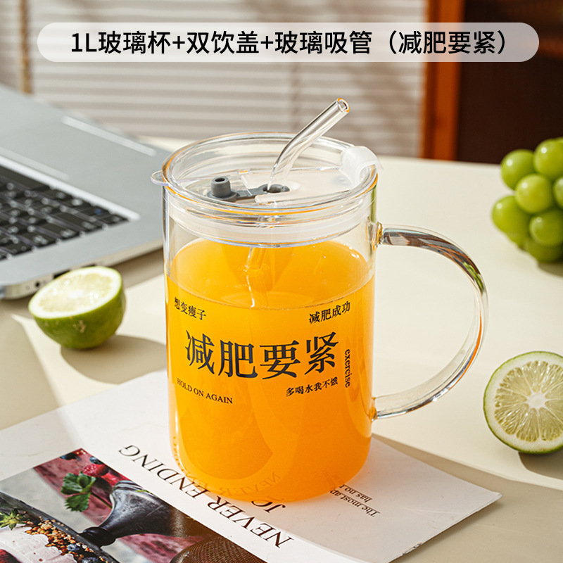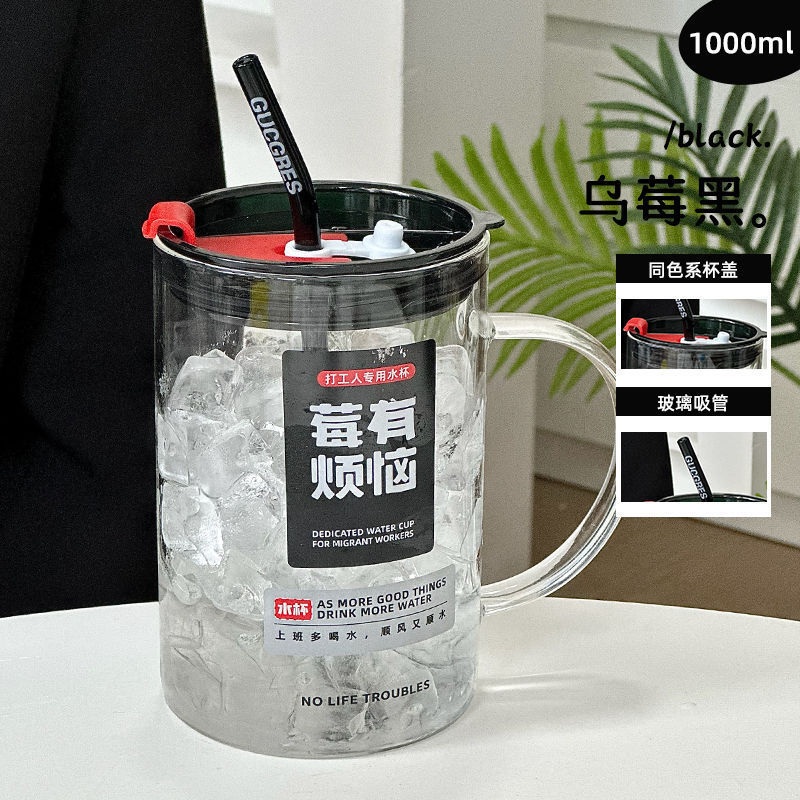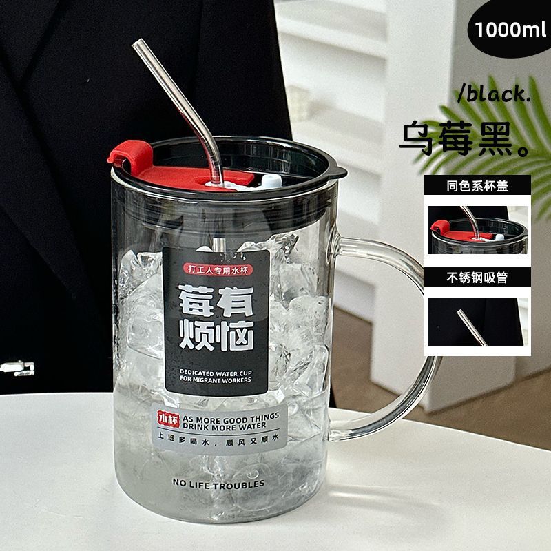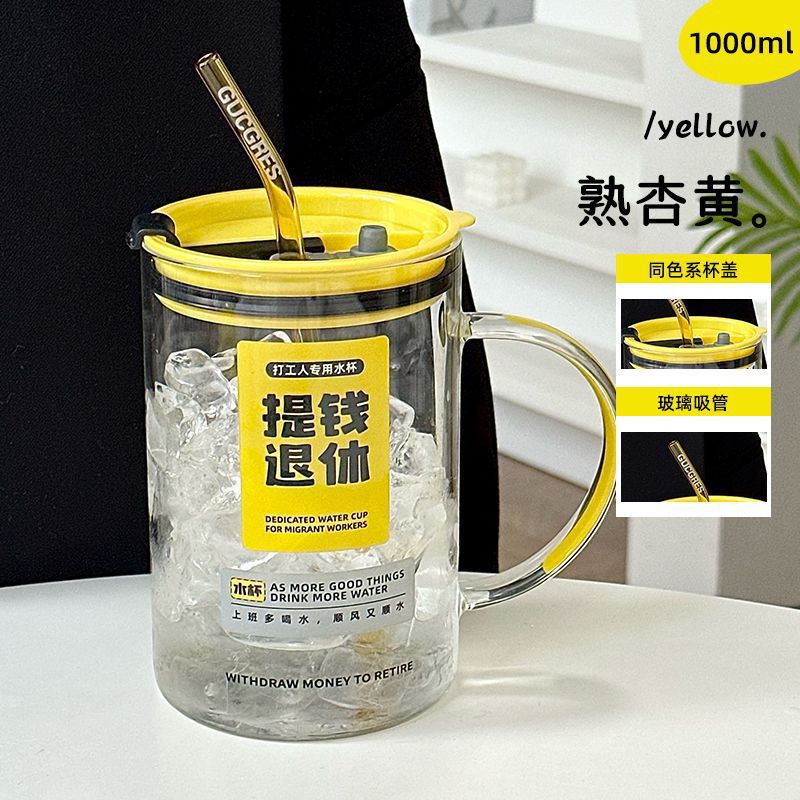 손잡이가 달린 머그, 고급스러운 물컵, 고온 방지 고붕규산염 밀짚컵, 대용량 유리컵 1000ml