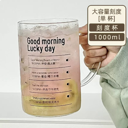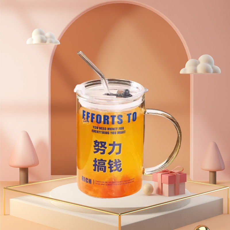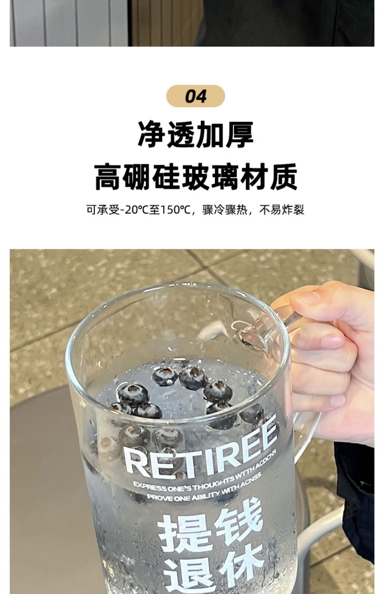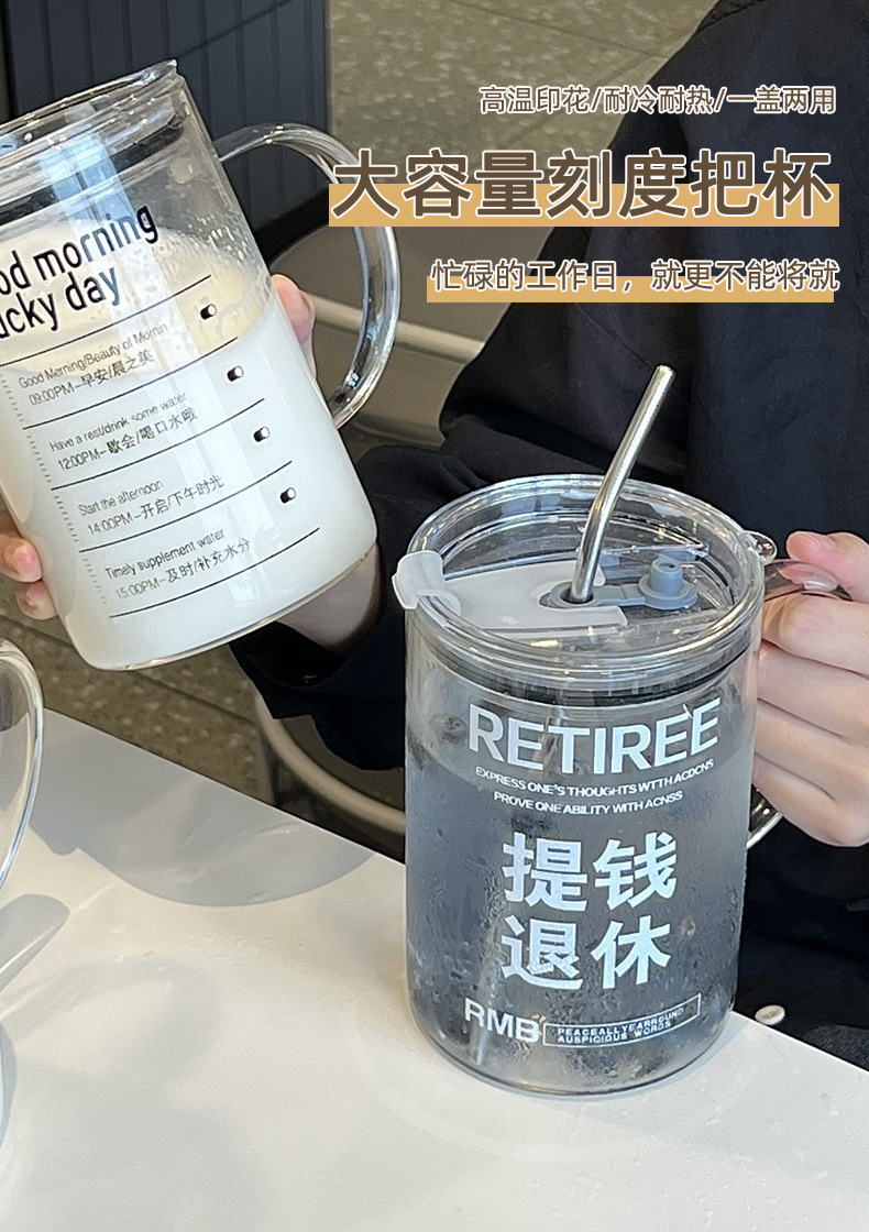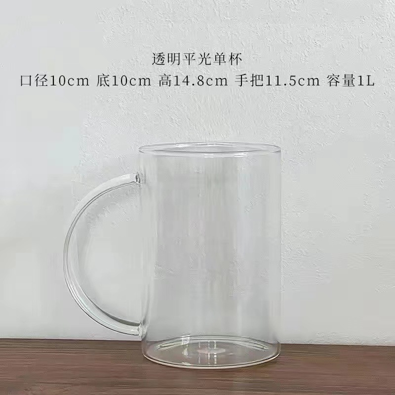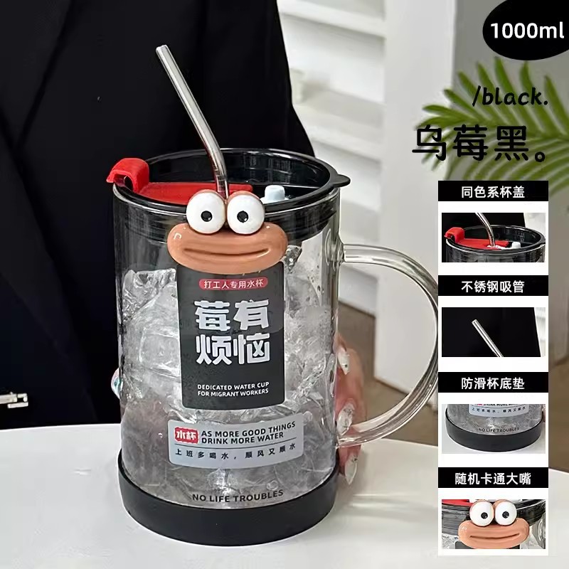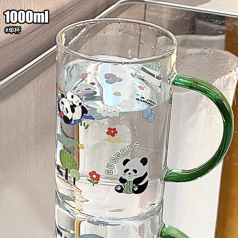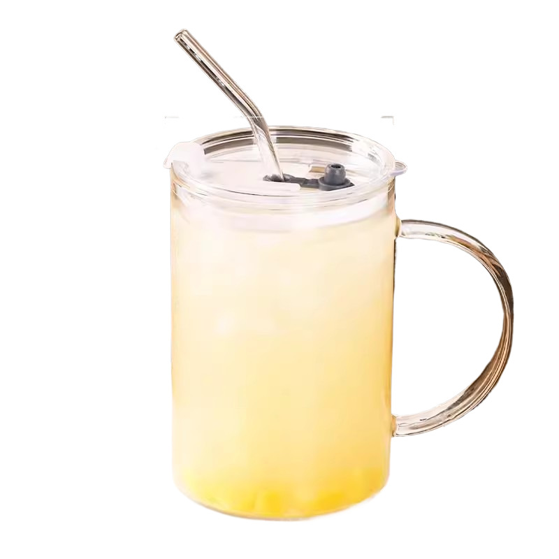 손잡이가 달린 머그, 고급스러운 물컵, 고온 방지 고붕규산염 밀짚컵, 대용량 유리컵 1000ml