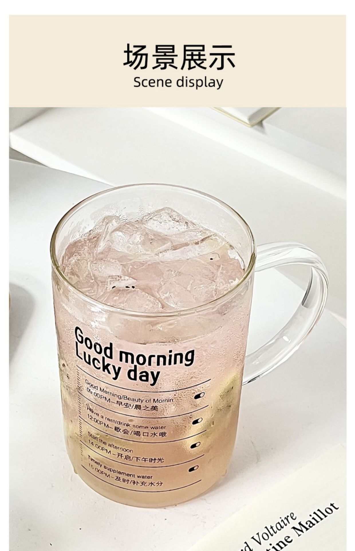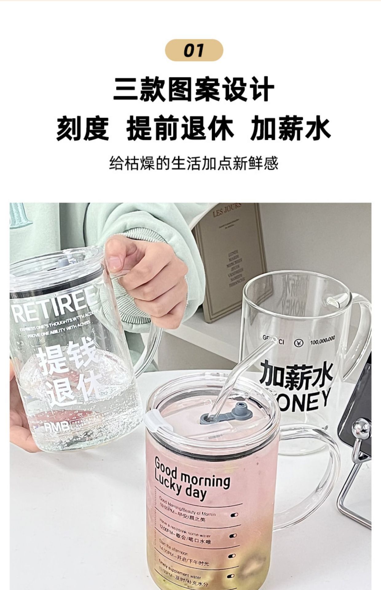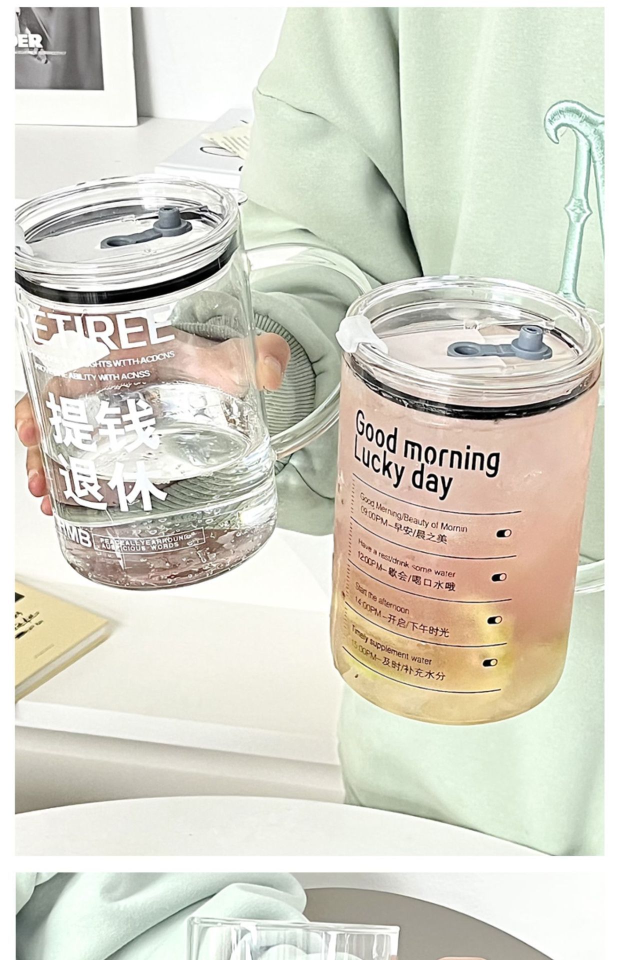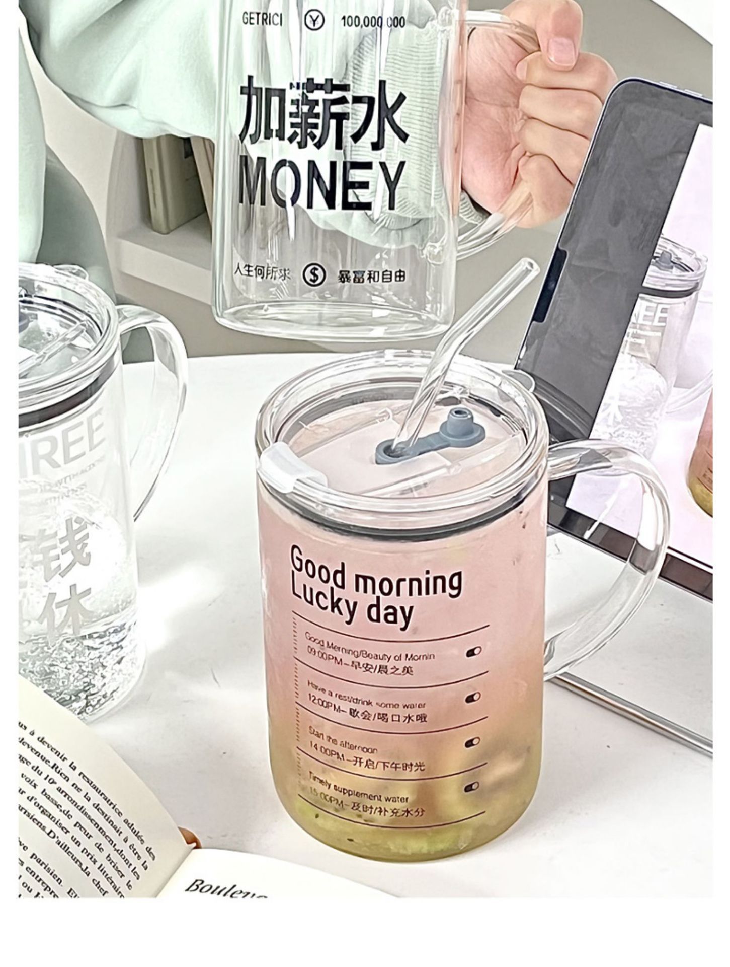 • 시간에 맞춰 물 마시기 + 유리 빨대 + 뚜껑