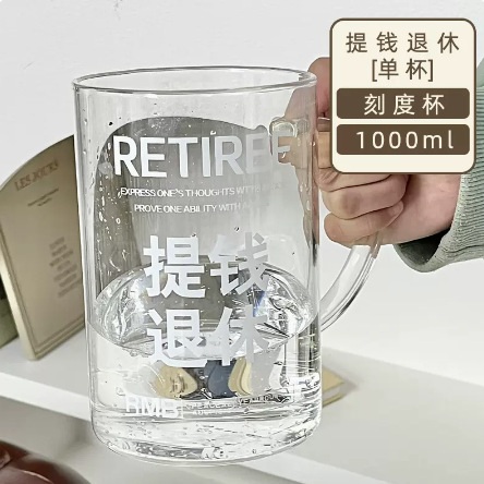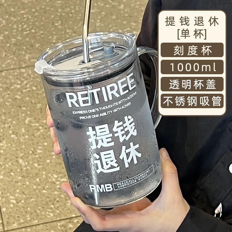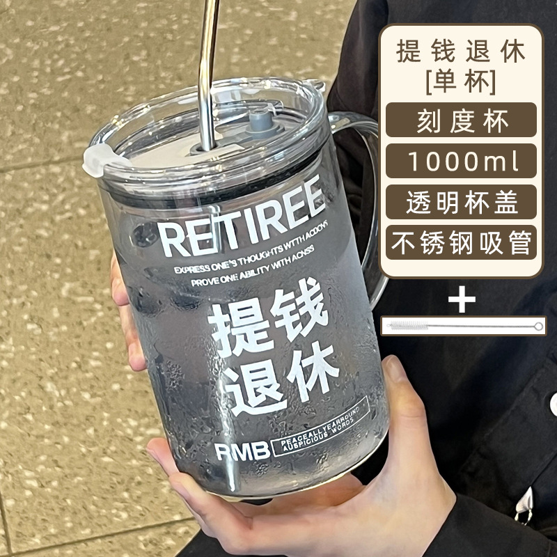 손잡이가 달린 머그, 고급스러운 물컵, 고온 방지 고붕규산염 밀짚컵, 대용량 유리컵 1000ml스토어 가기