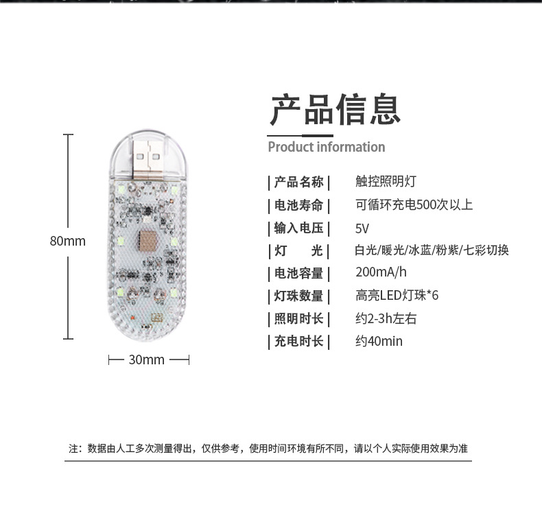 국경 간 자동차 터치 라이트 USB 무선 발 라이트 플래시 항공기 조명 예비 조명 다채로운 장식 경찰