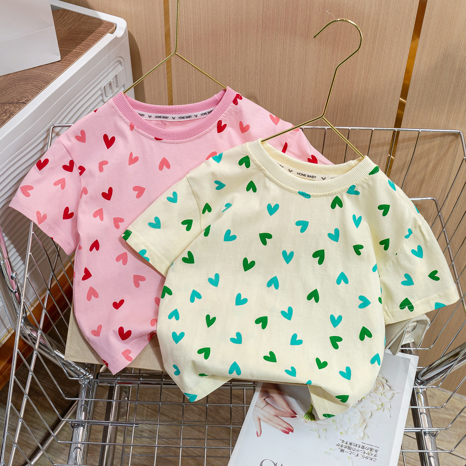 女童韩版简约爱心印花短袖T恤夏季新款宝宝洋气甜美宽松半袖上衣