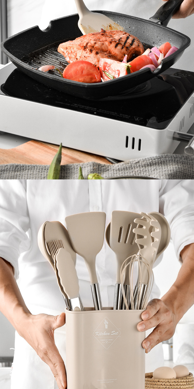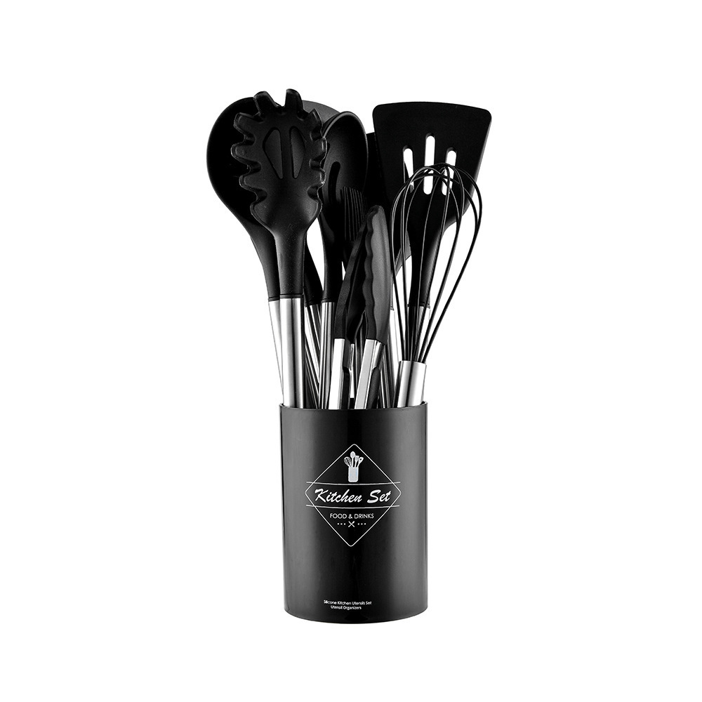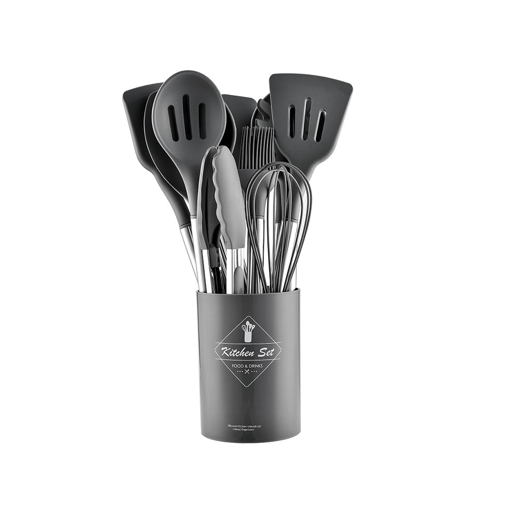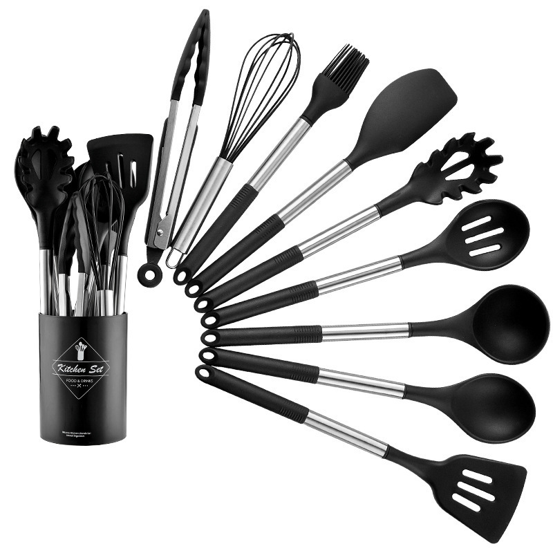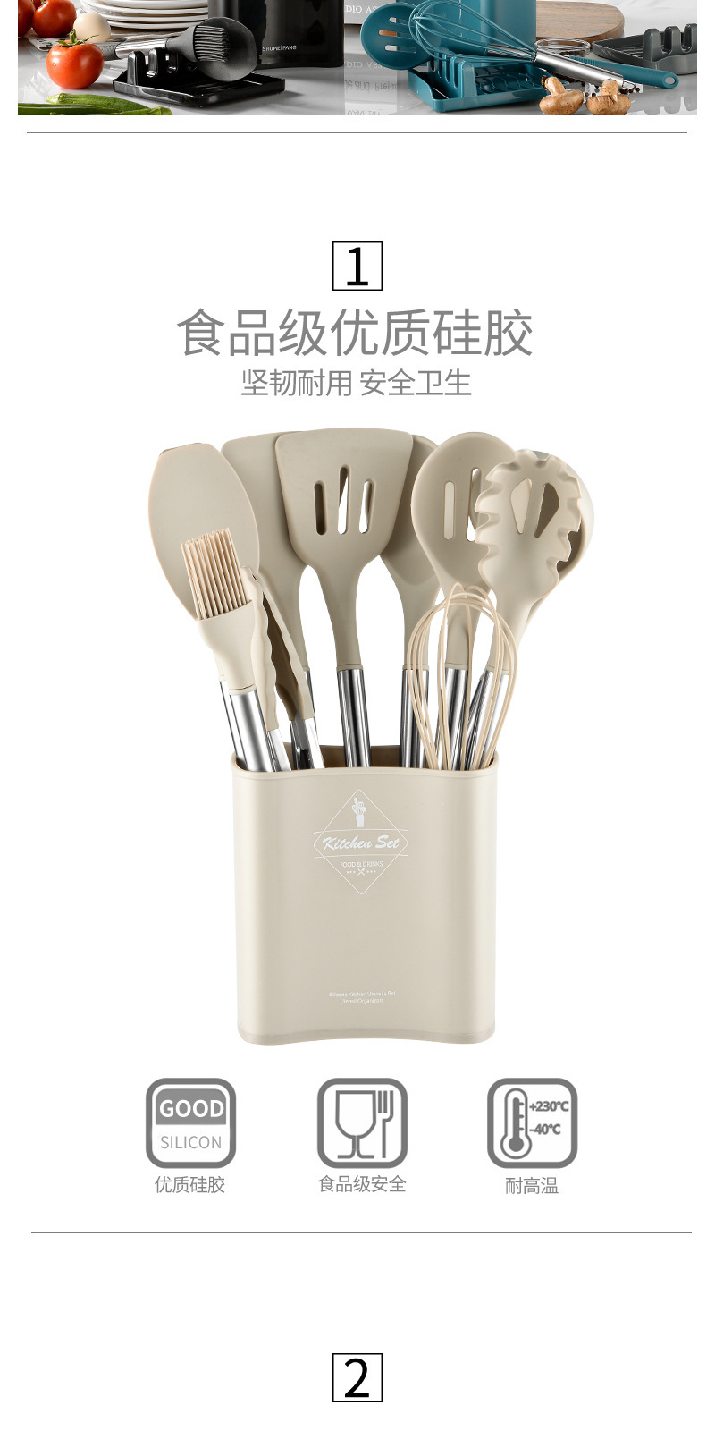 漏铲83g,汤勺87g,小汤勺81g,平头铲83g,刮刀108g,锅铲86g,食物夹118g,打蛋器39.5g,油刷59g,漏勺73g,意粉爪87g,收纳桶207g,收纳架62.5g,彩盒140g,整套约1315g(手工测量)