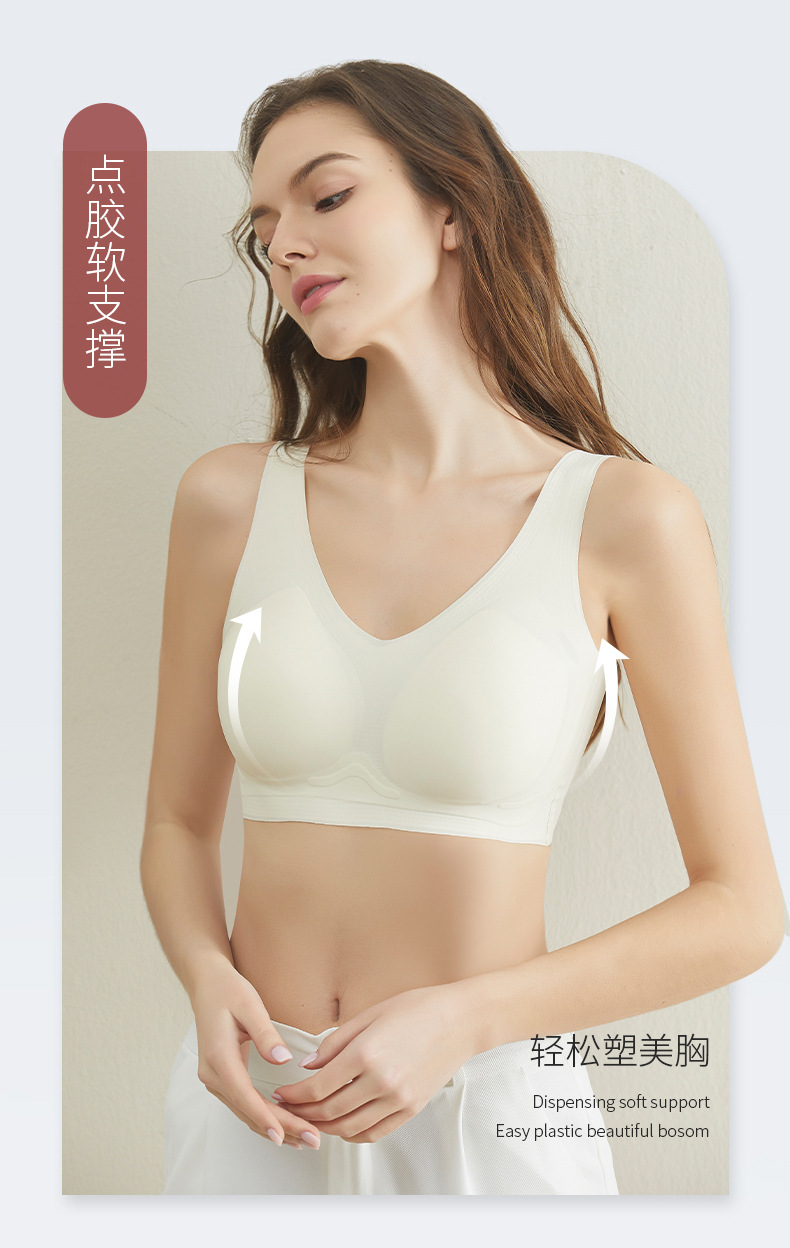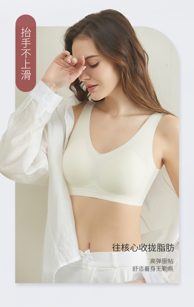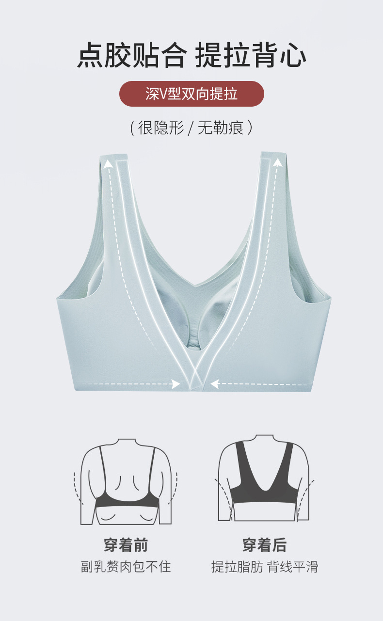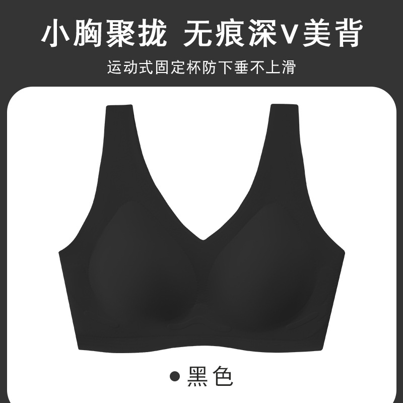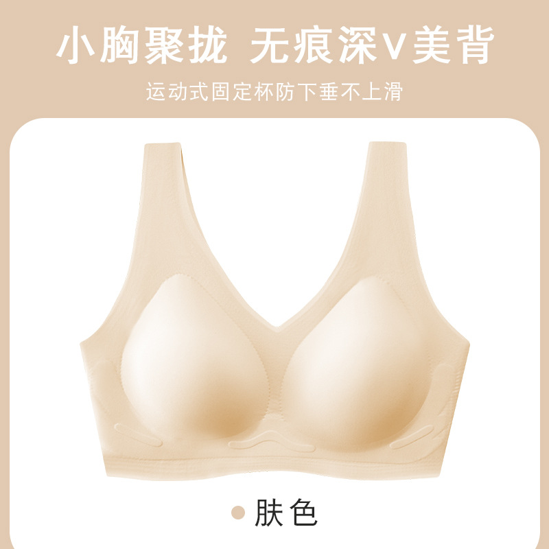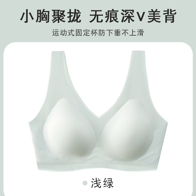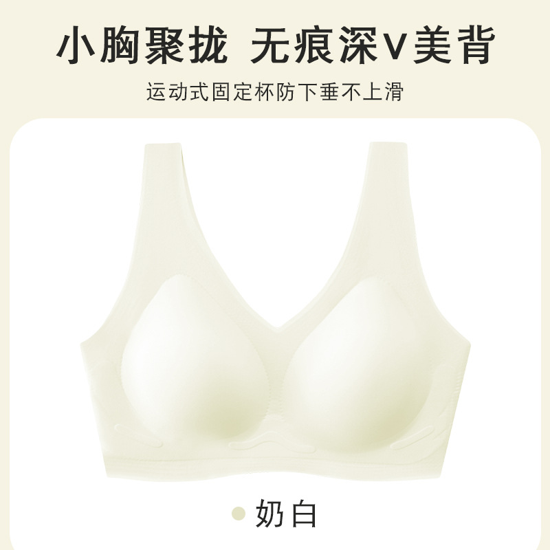 흔적 없는 속옷 여성용 작은 가슴 개더링 봄과 여름 노 링 V 뷰티 백 통합 조끼 고정 컵 스포츠 브라스토어 가기