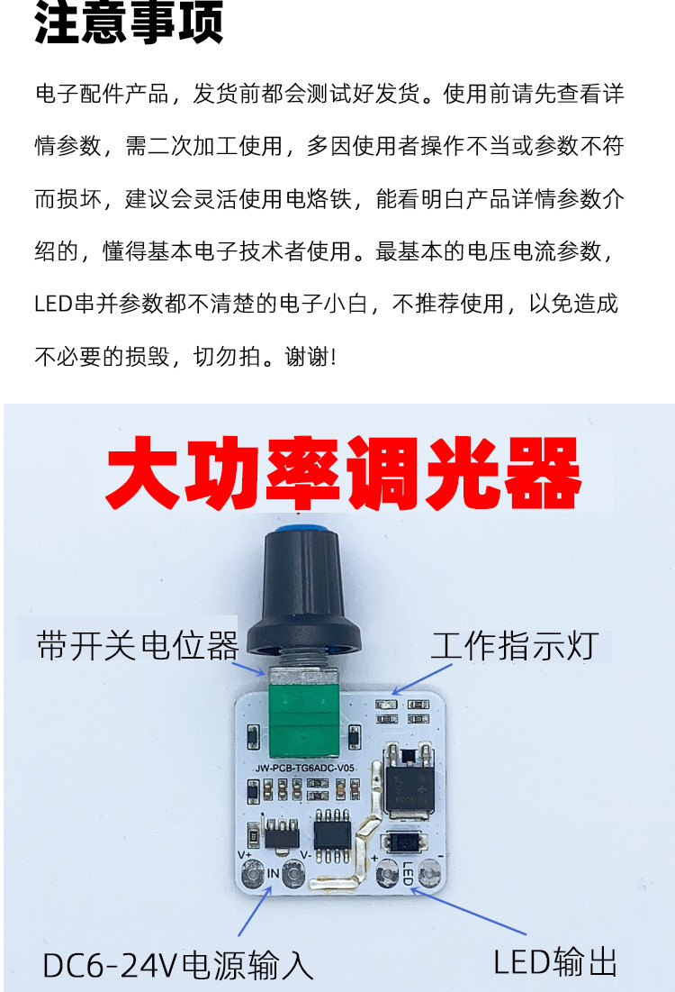 LED 일정한 전압 디머 모듈 6-24V 라이트 바 스위치 보드 밝기 손잡이 조정 광고 단어 없음 플래시스토어 가기