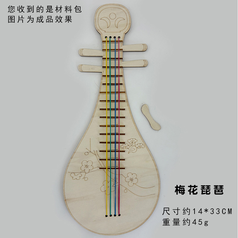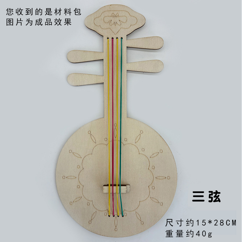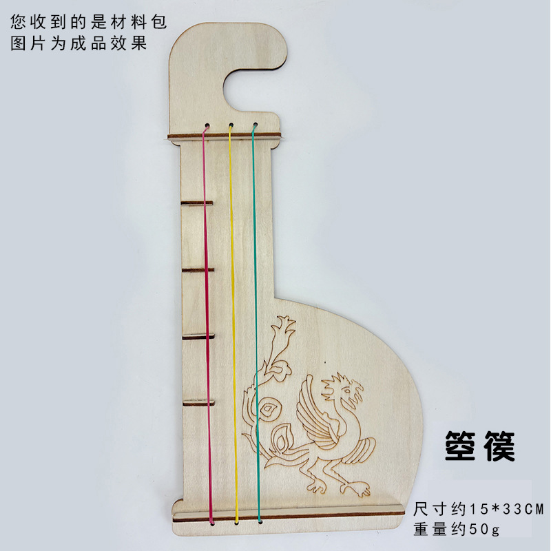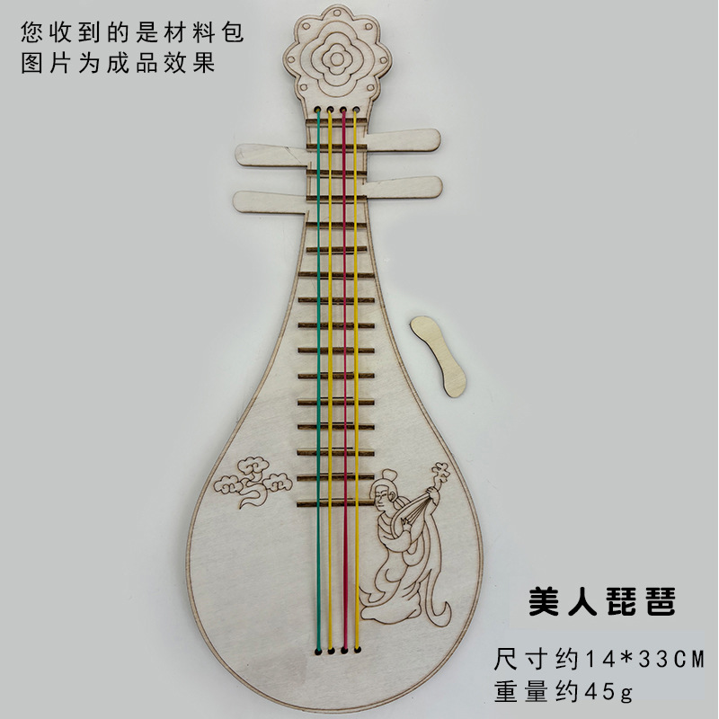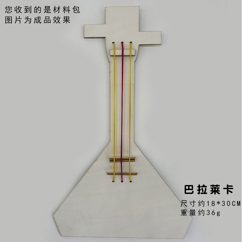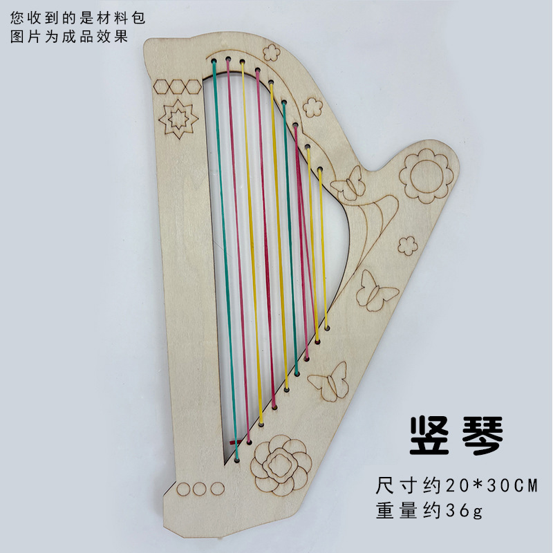 어린이 나무 피파 전통 악기 수제 나무 흰색 공백 그린 낙서 기타 DIY 하프 삼각계스토어 가기