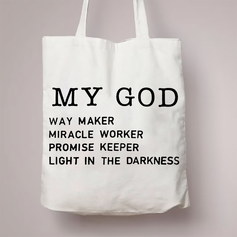 2023 새로운 나의 하나님 예수님은 여자의 어깨 가방 캐주얼 패션 캔버스 토트 가방 여성스토어 가기