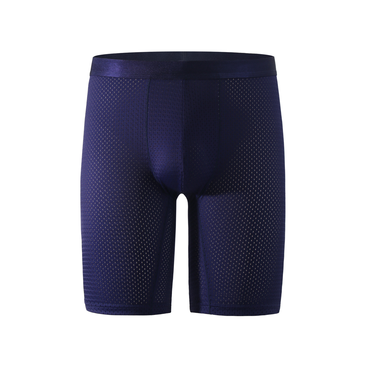 남성용 스포츠 속옷, 남성용 아이스 실크 속건성 긴 길이의 마모 방지 다리 확대 및 뚱뚱한 중간 허리 사각 팬티스토어 가기