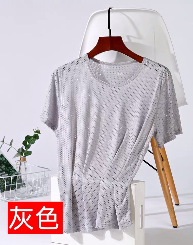 원피스 Dropshipping 무료 배송 얼음 실크 반팔 티셔츠 남성 여름 얇은 메쉬 통기성 느슨한 정장 반팔 티셔츠스토어 가기