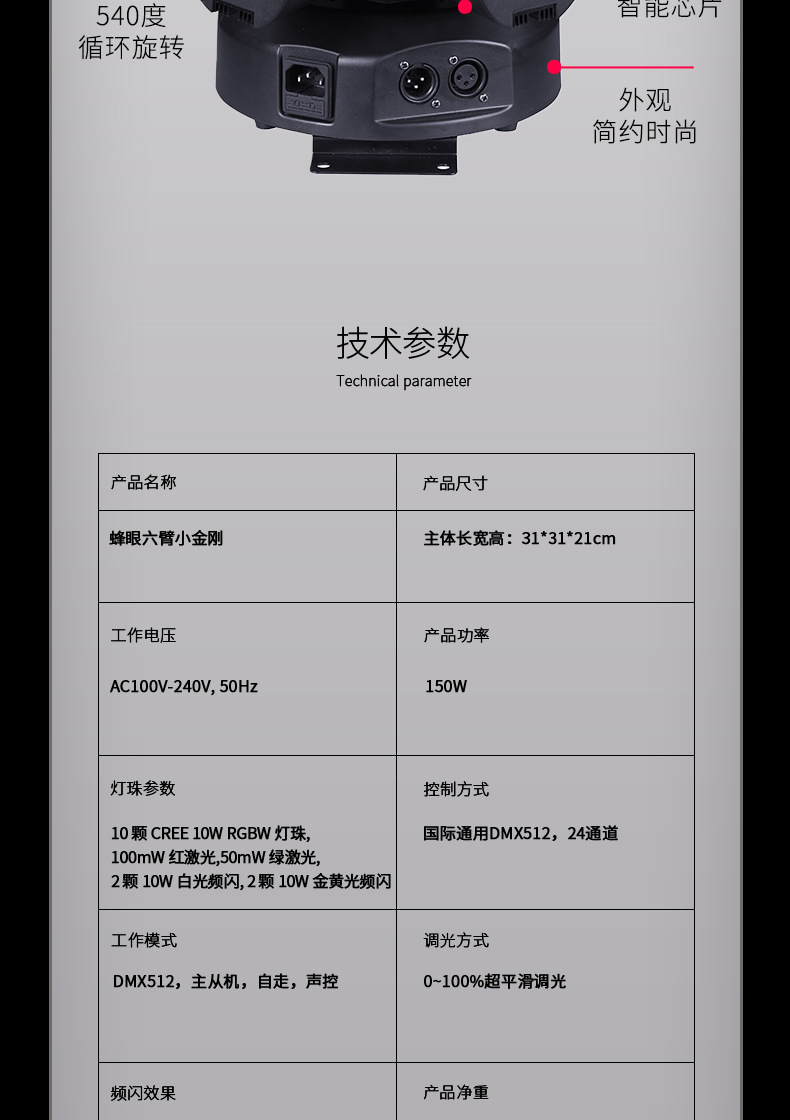 벌눈형 육팔 소형 무대조명 KTV 바 무대조명 실내 분위기 조명 회전 레이저 조명