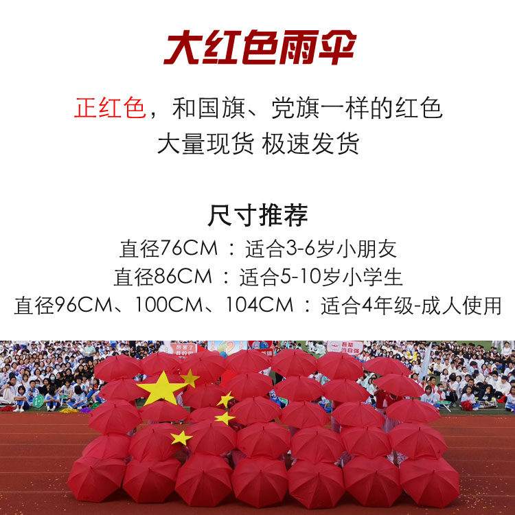 ☋ 도매용 큰 빨간 우산, 반자동 스포츠 행사 공연용 우산, 단체체조 소품 우산, 학생용스토어 가기
