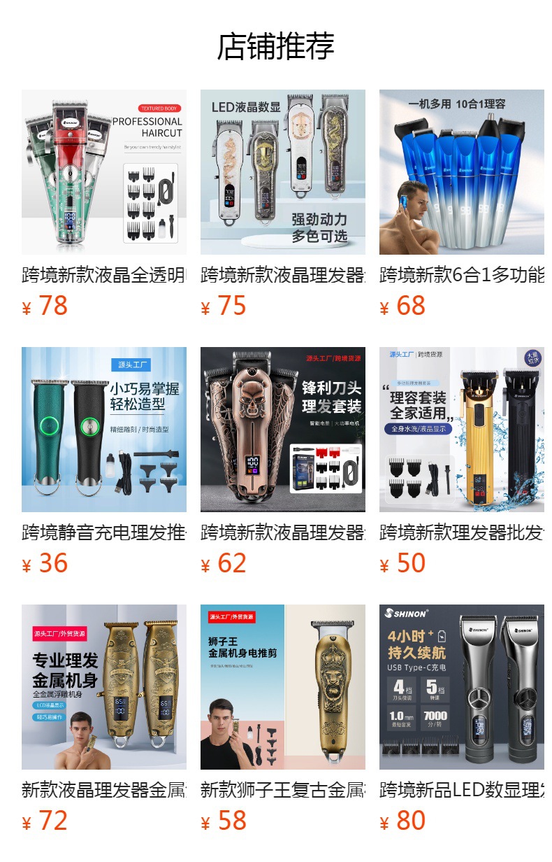 主营:理发器、剃须刀、卷发器、吹风机、女士剃毛器、磨脚器、毛球修剪器、鼻毛修剪器等小家电