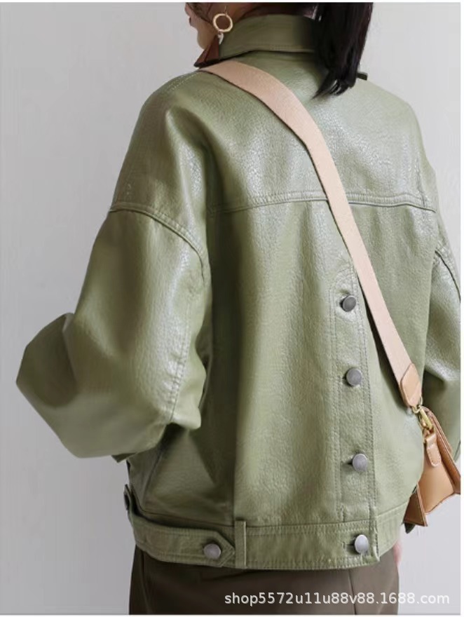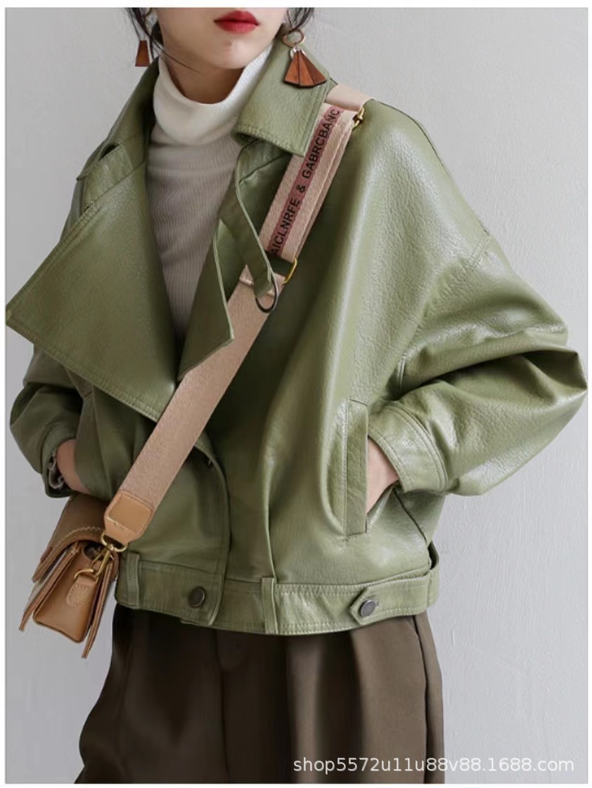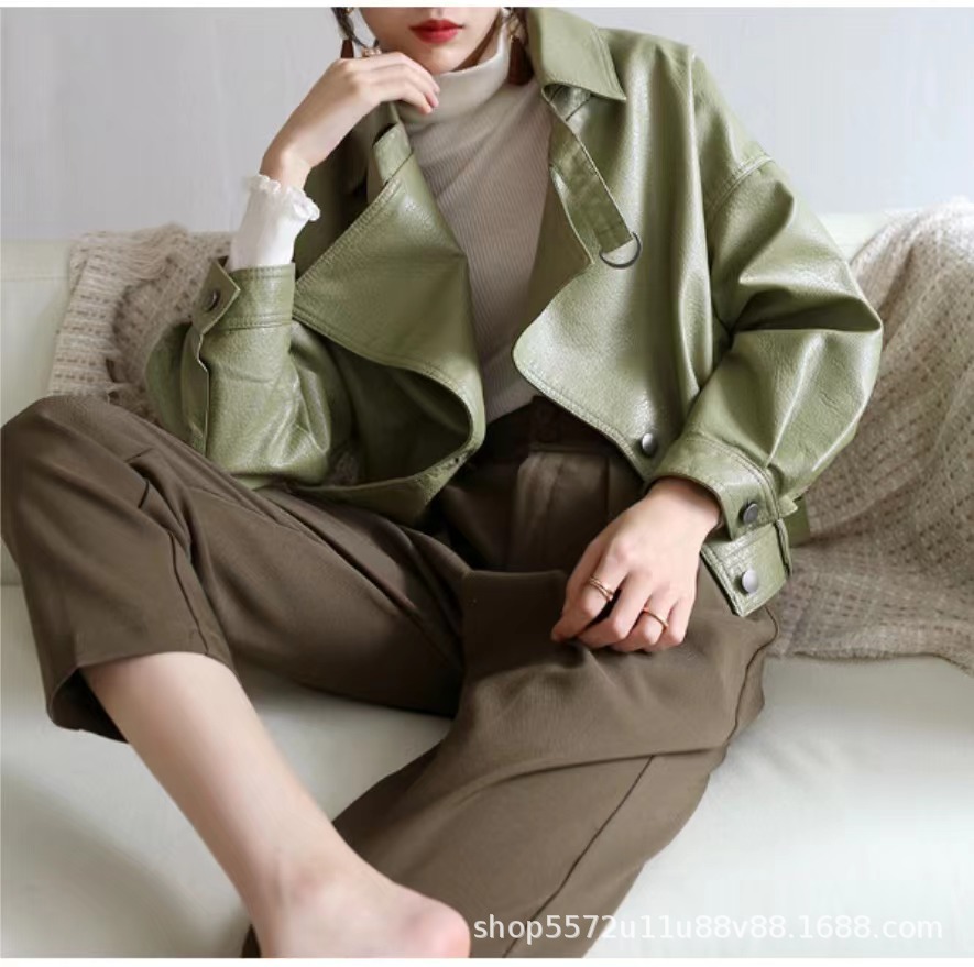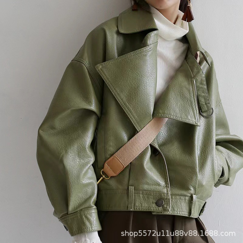 BF 가죽 자켓 2025 오토바이 스타일 여성 봄 가을 신상 한국판 루즈핏 가죽 자켓 PU 가죽 레트로 하이웨이스트 슬림 숏 자켓