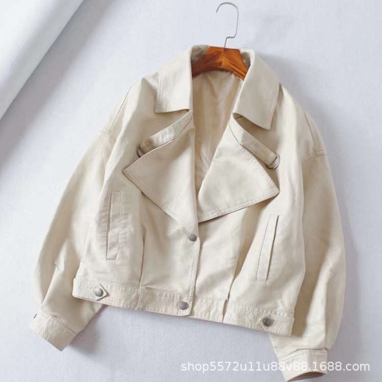 BF 가죽 자켓 2025 오토바이 스타일 여성 봄 가을 신상 한국판 루즈핏 가죽 자켓 PU 가죽 레트로 하이웨이스트 슬림 숏 자켓스토어 가기