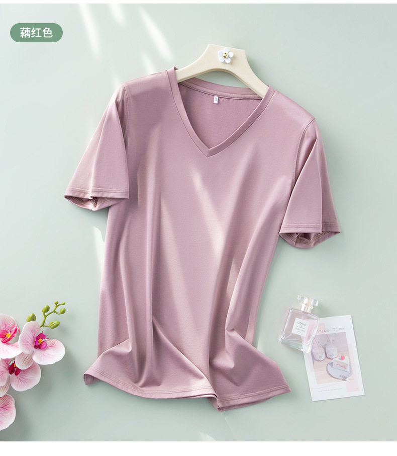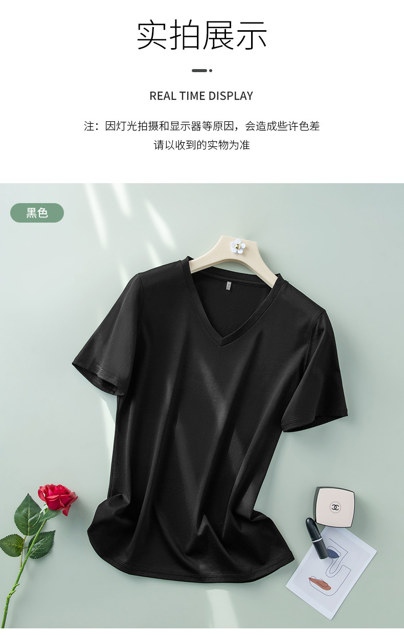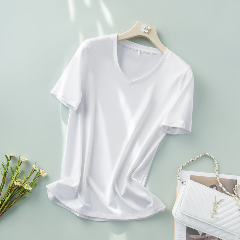 라이트 럭셔리 뽕나무 실크 반팔 티셔츠 여성용 올매치 브이넥 탑 2023 여름 신상 아이스 쿨 브이넥 반팔 베이스 셔츠스토어 가기