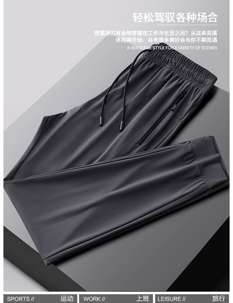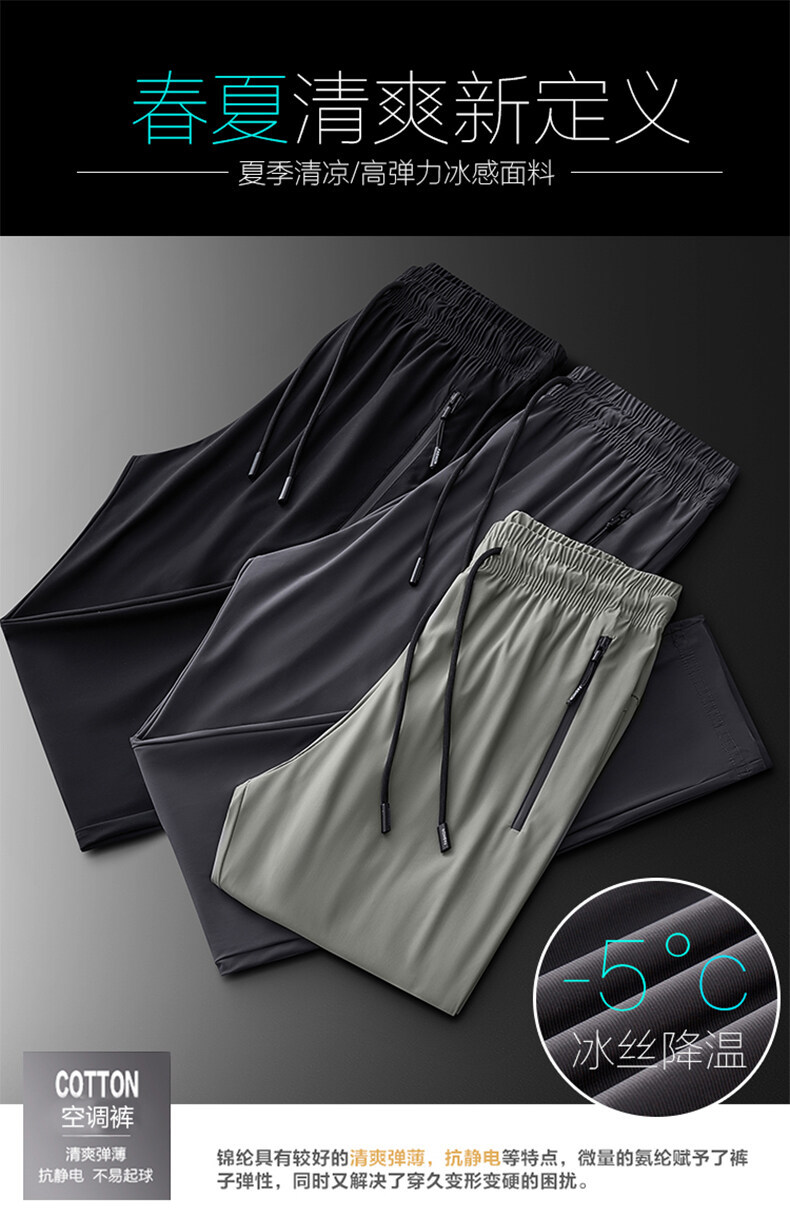 남성 캐주얼 바지, 얇은 여름용 속건 아이스 실크 2026 남성용 대형 사이즈 스트레이트 스포츠 긴바지, 남성 의류, 통기성스토어 가기