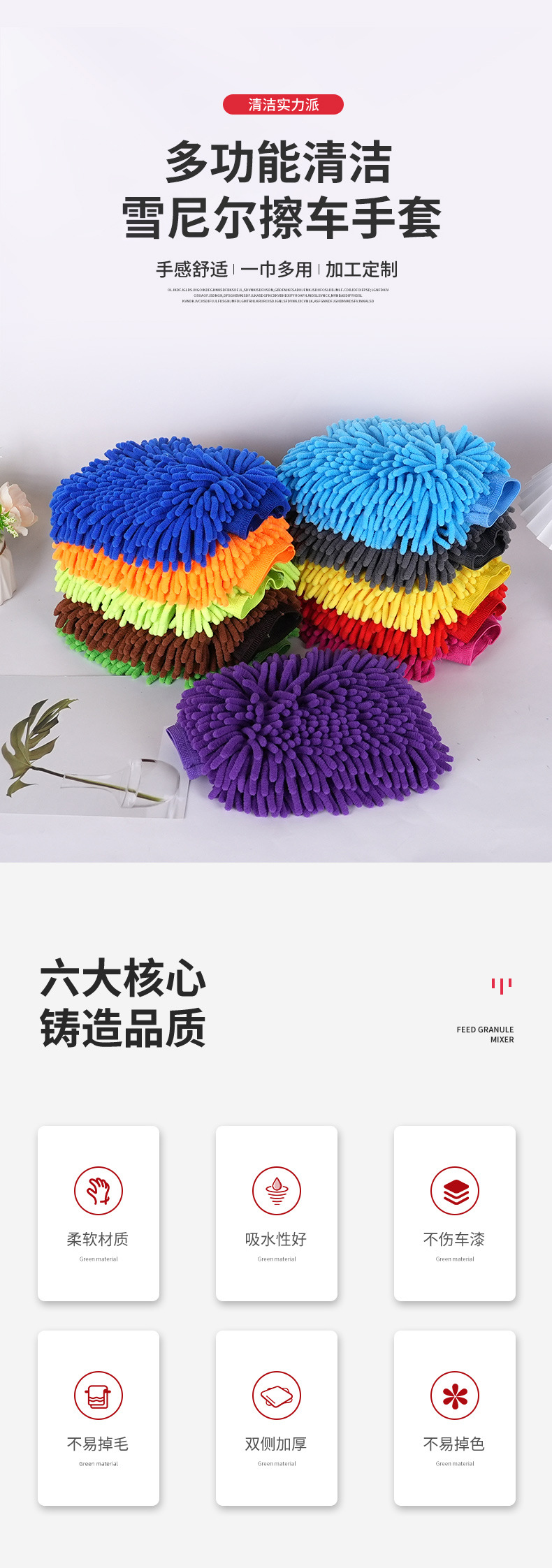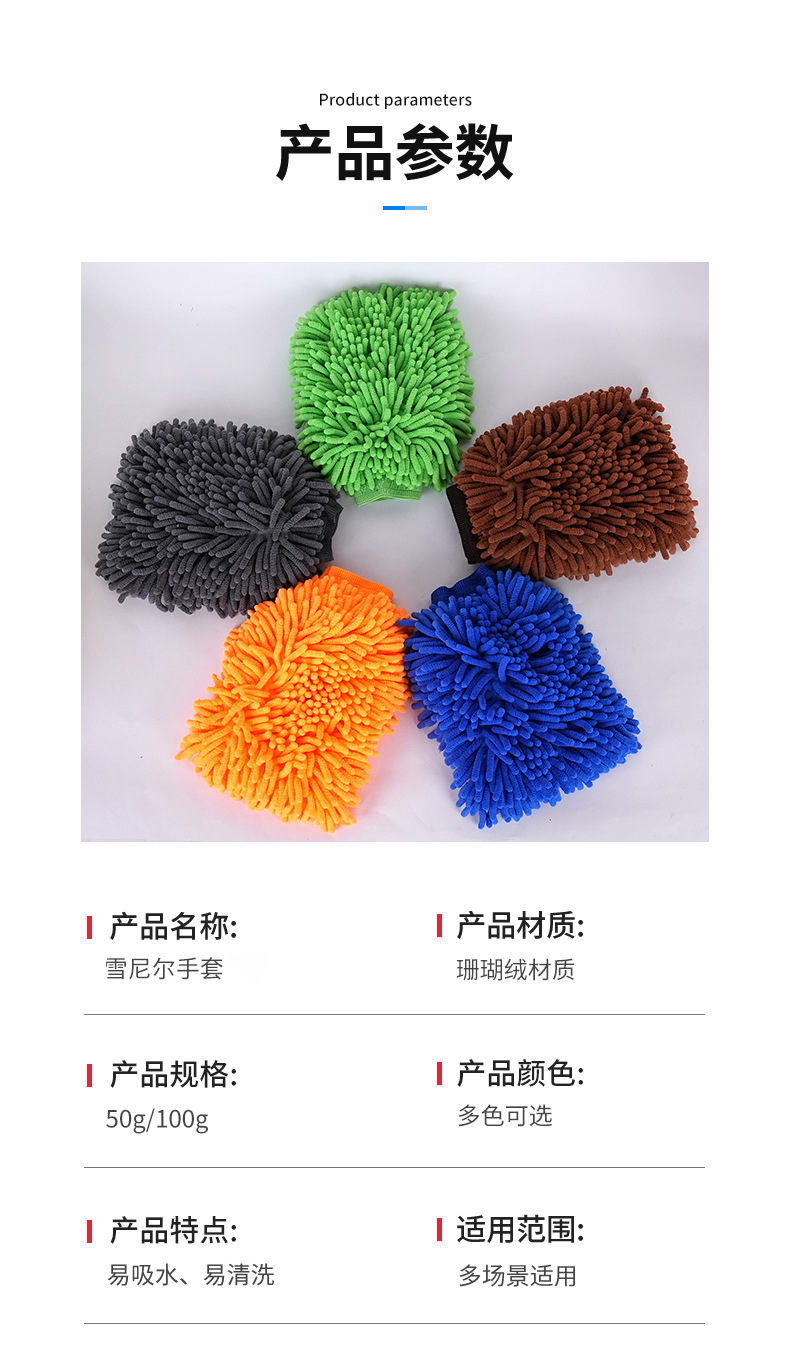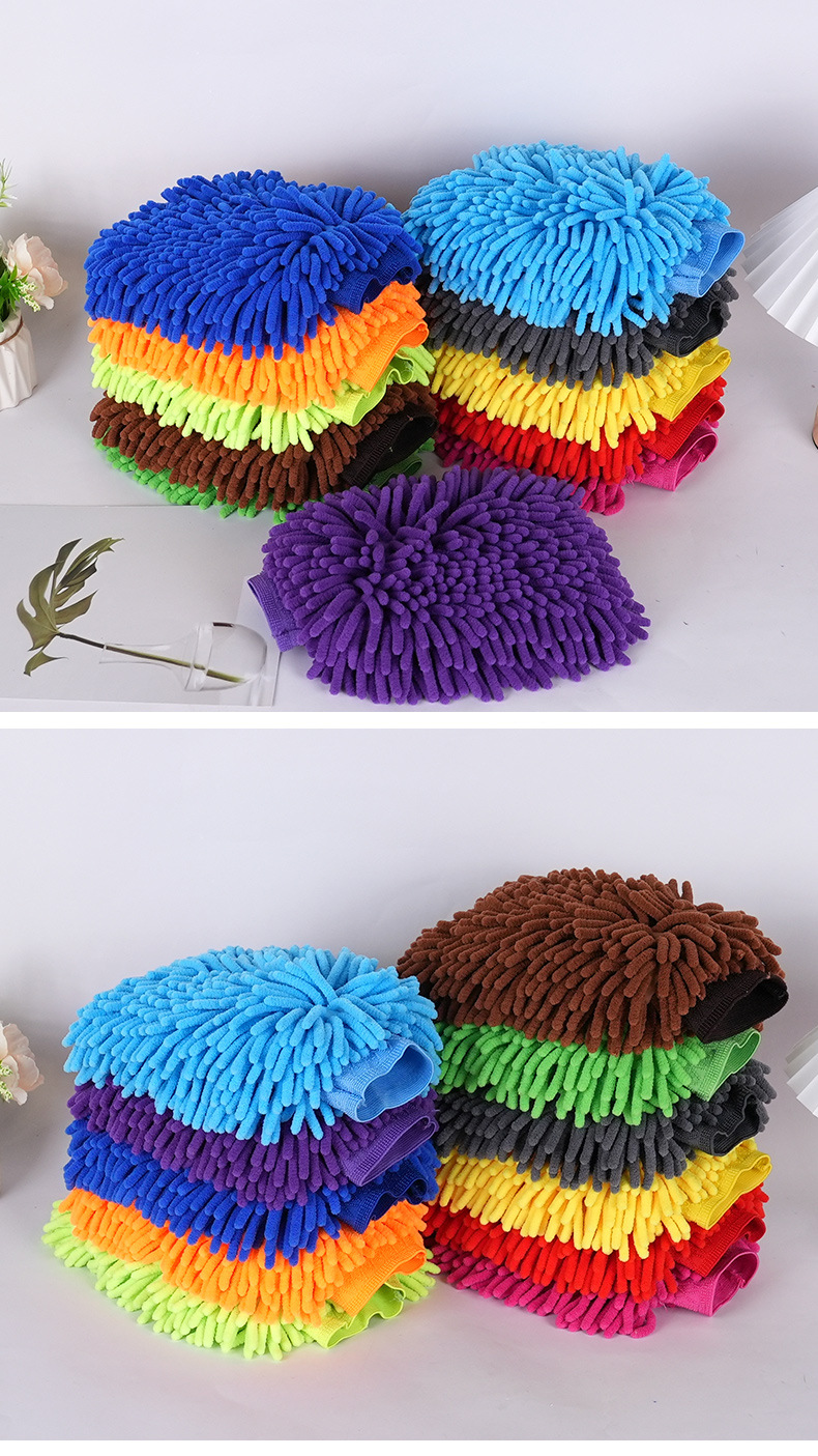 도매 셔닐 자동차 장갑 산호 양털 흡수 세차 도구 청소 용품 잠금 방수 애벌레