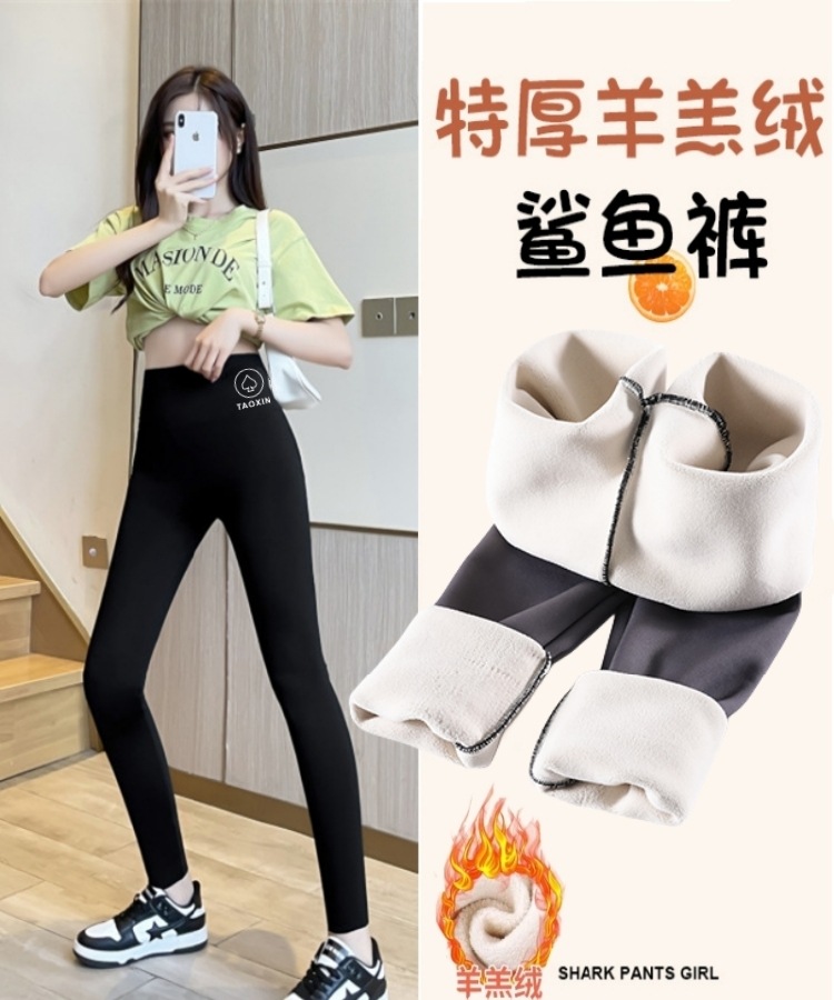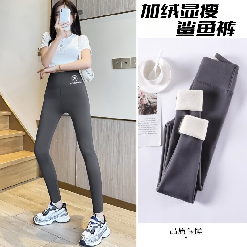 양고기 상어 바지 여자의 겉옷 가을과 겨울 기모 두꺼운 하이 웨이스트 꽉 플러스 사이즈 바비 요가 레깅스스토어 가기