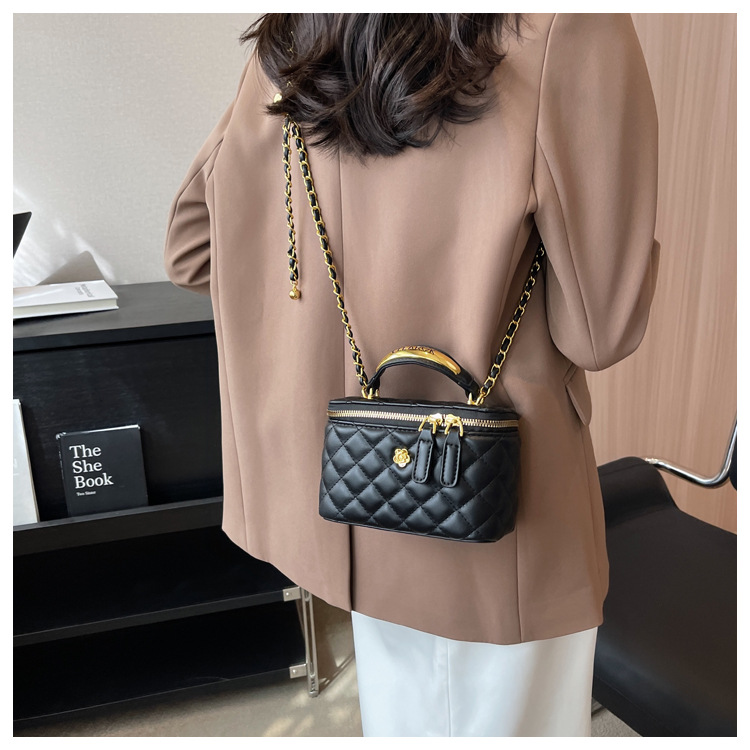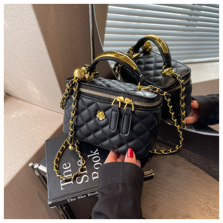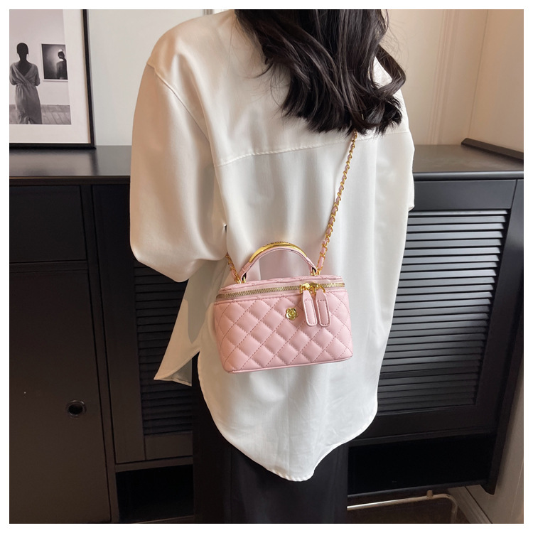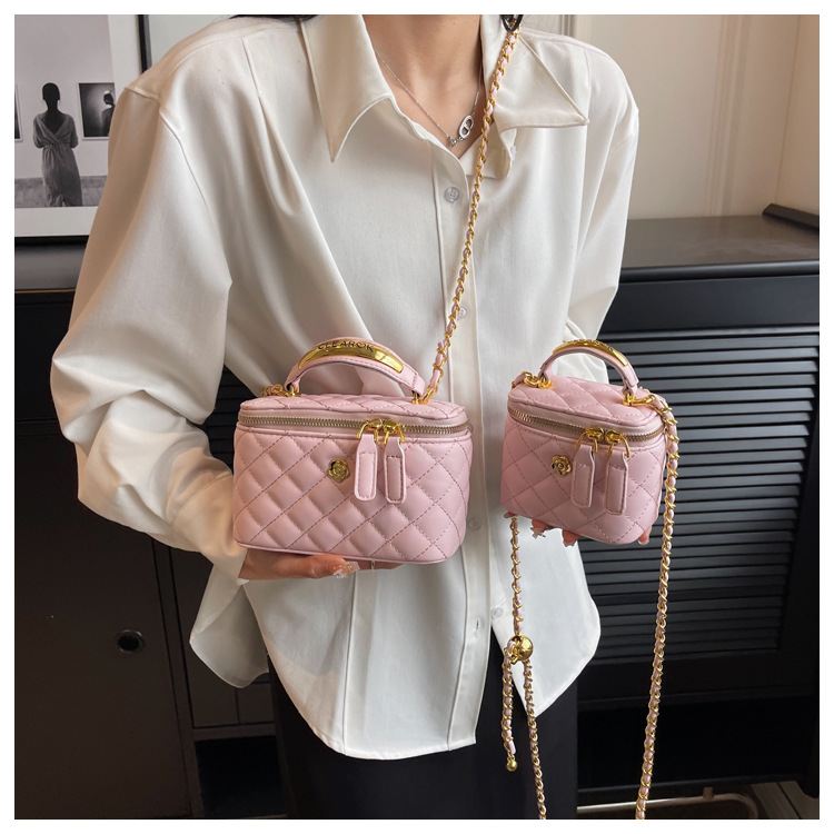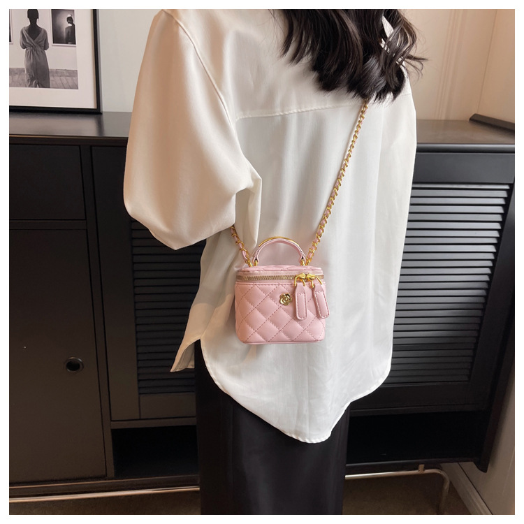 체인 미니 스몰 백 여성용 2023 신상품 유행 마름모꼴 올 매치 크로스바디 백 봄과 여름 질감 휴대용 소형 스퀘어 백스토어 가기