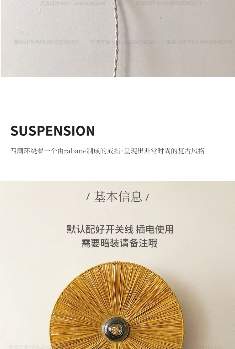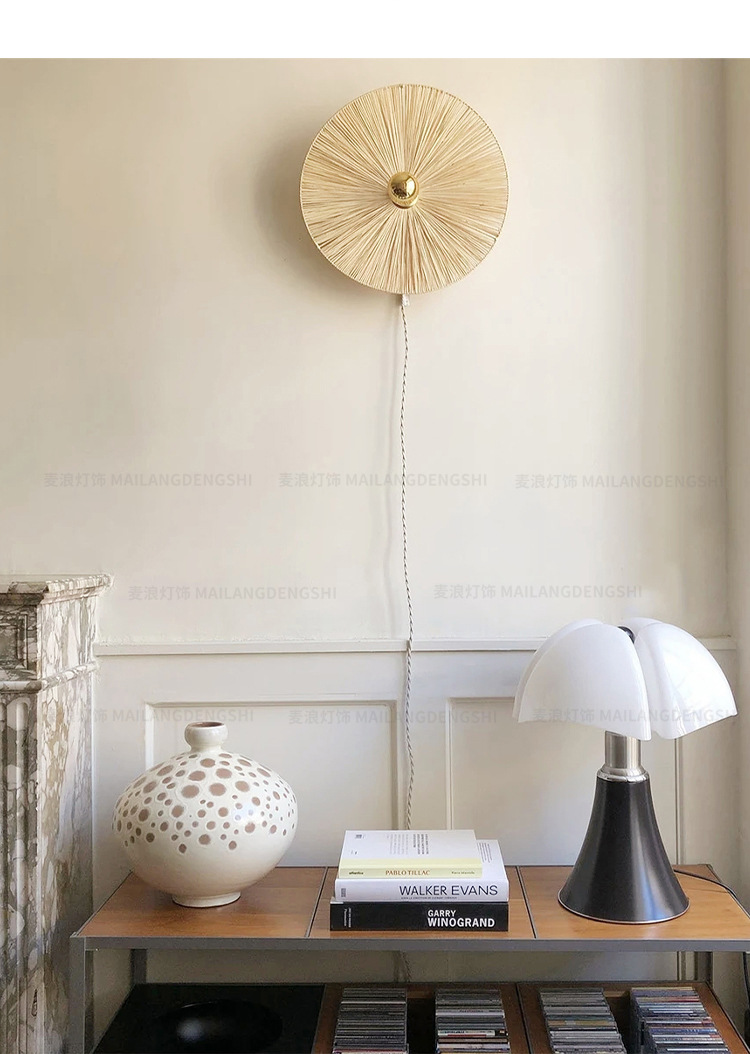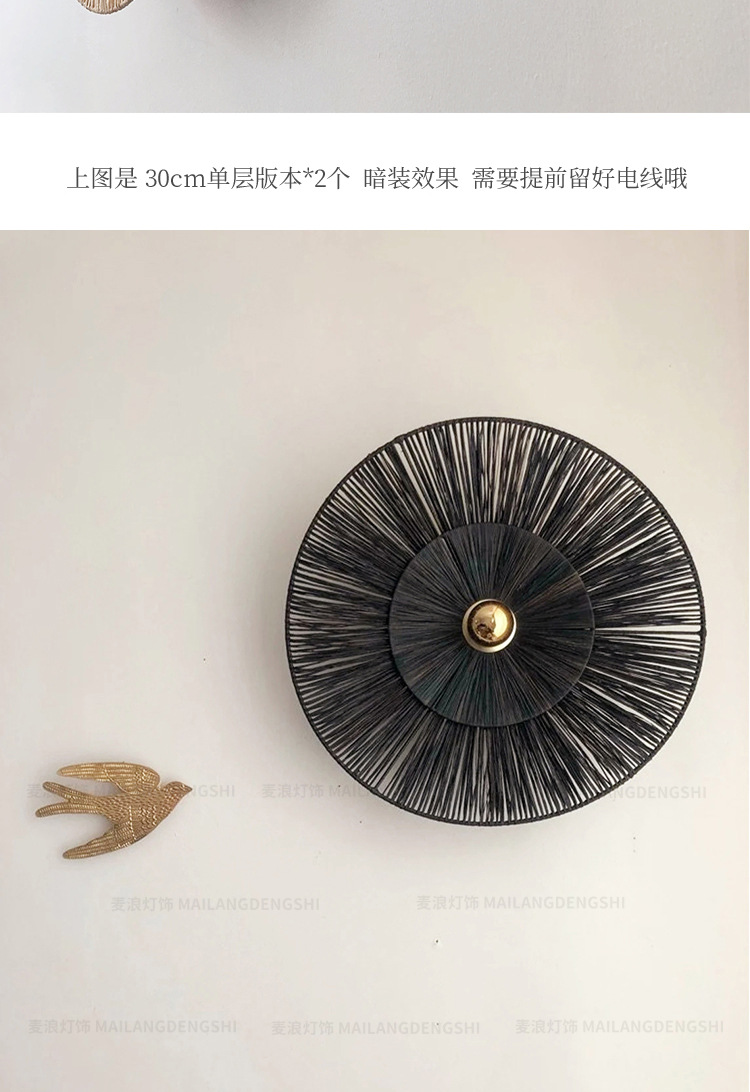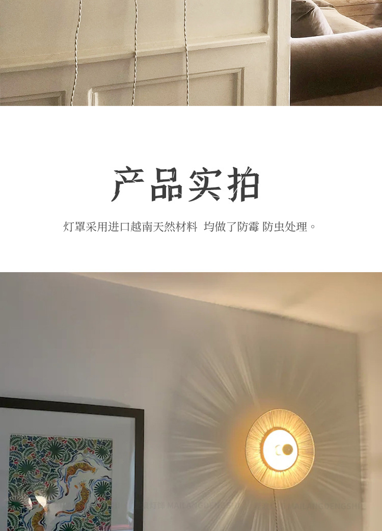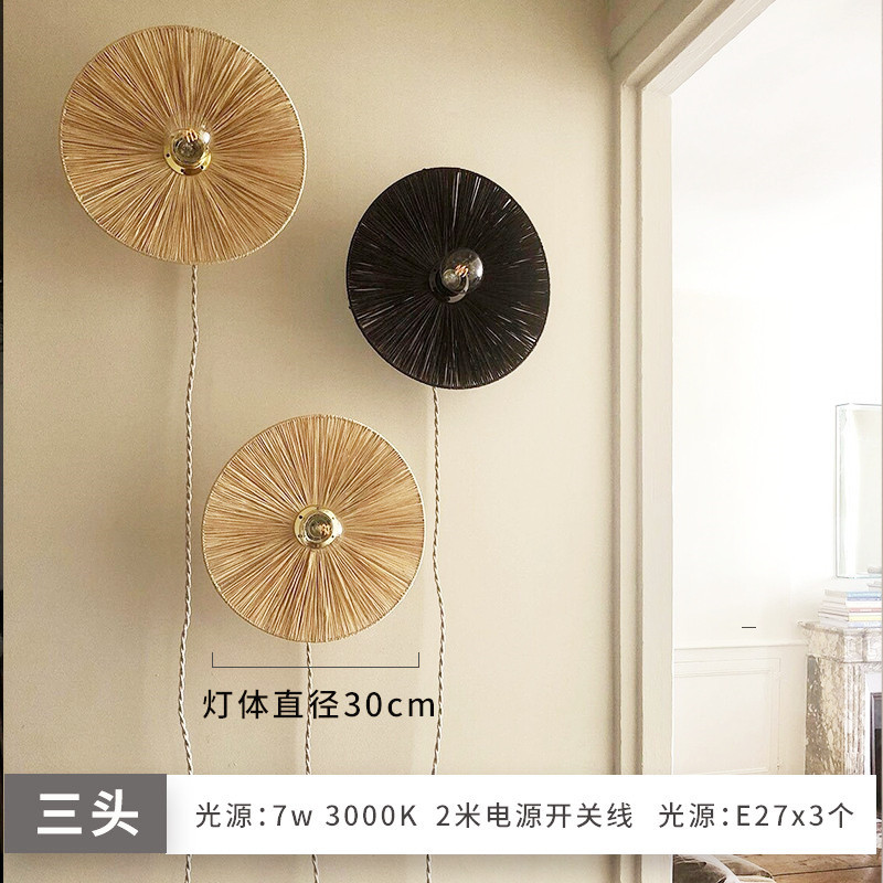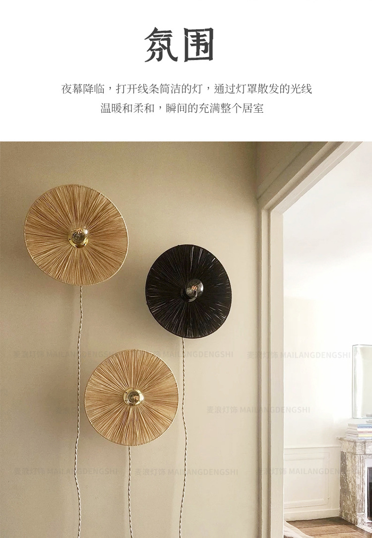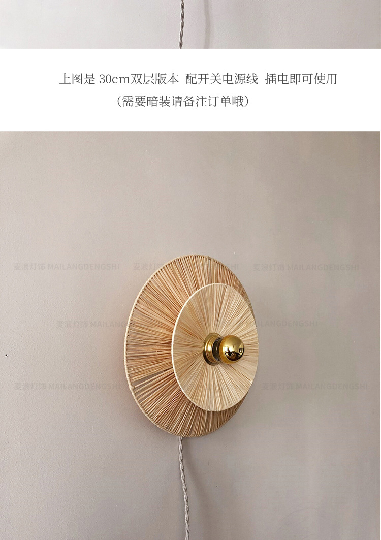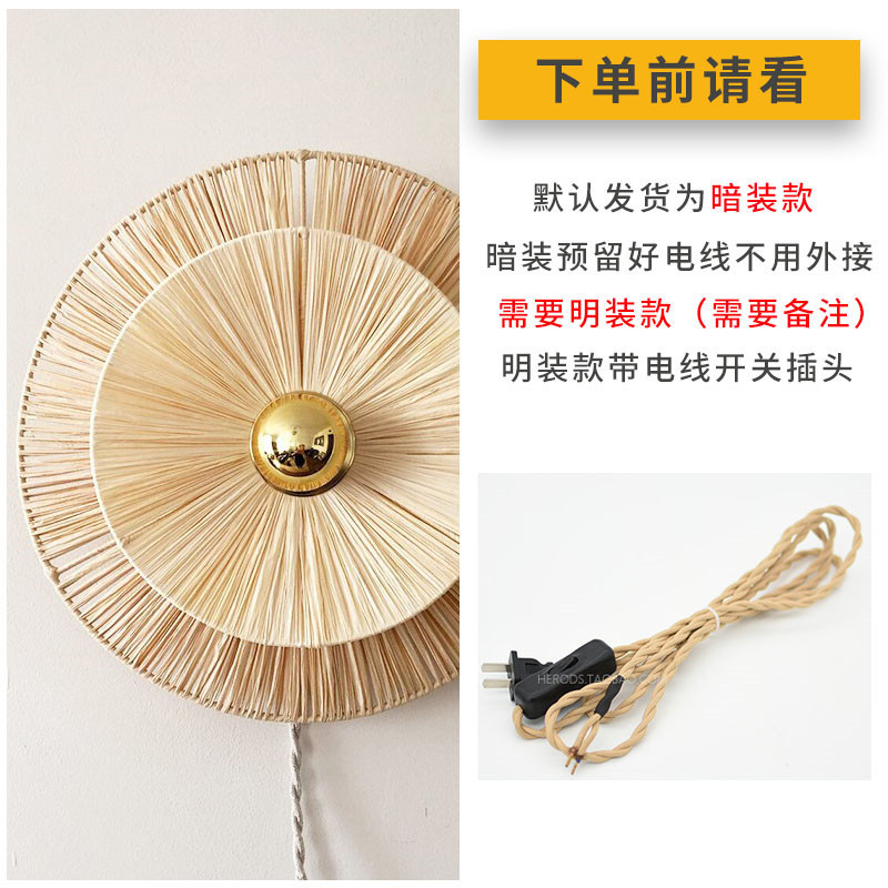 일본식 등나무 빈티지 수제 밀짚 거실 배경 벽 장식 램프 상점 복도 침실 침대 옆 벽 램프스토어 가기