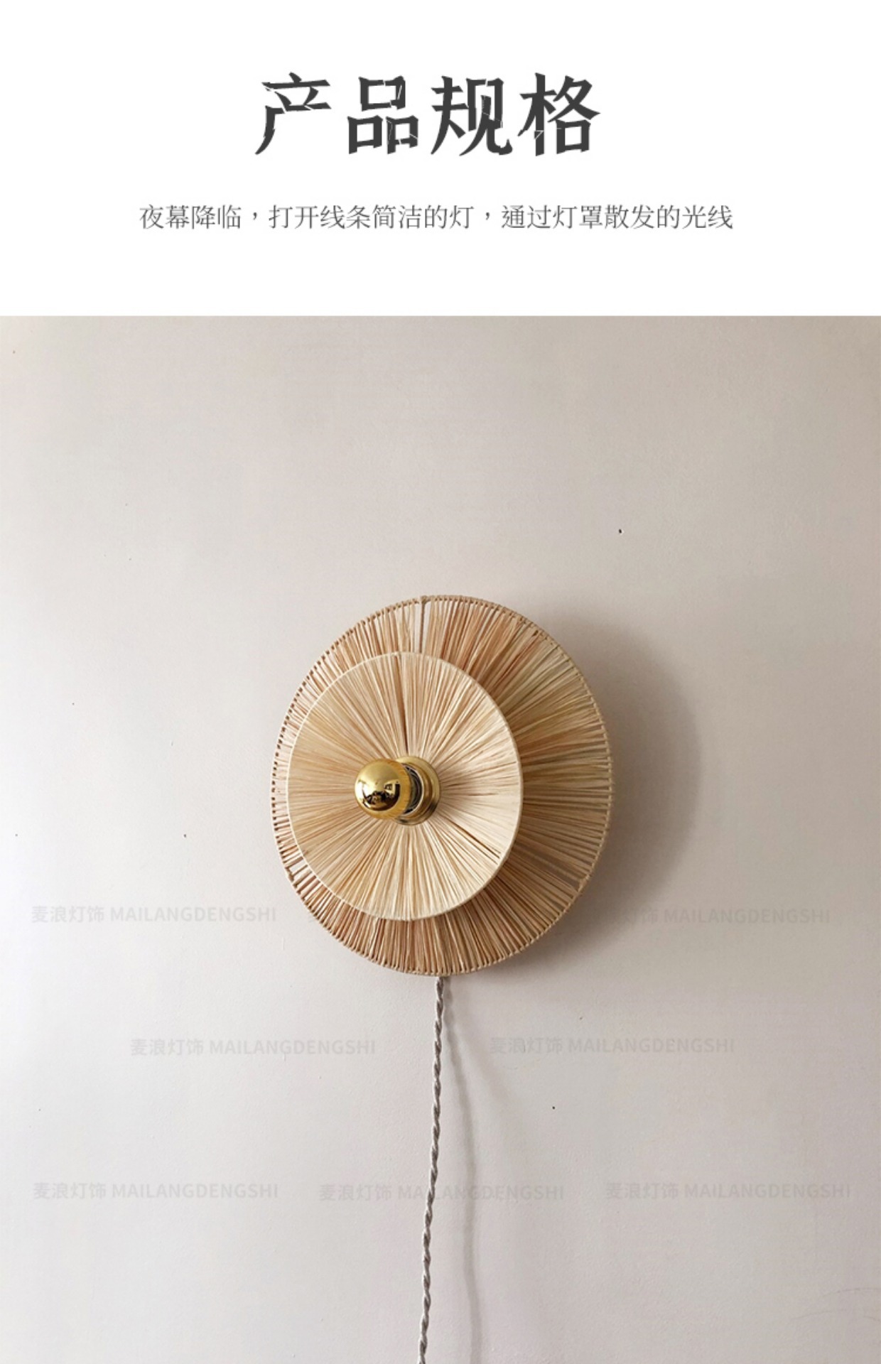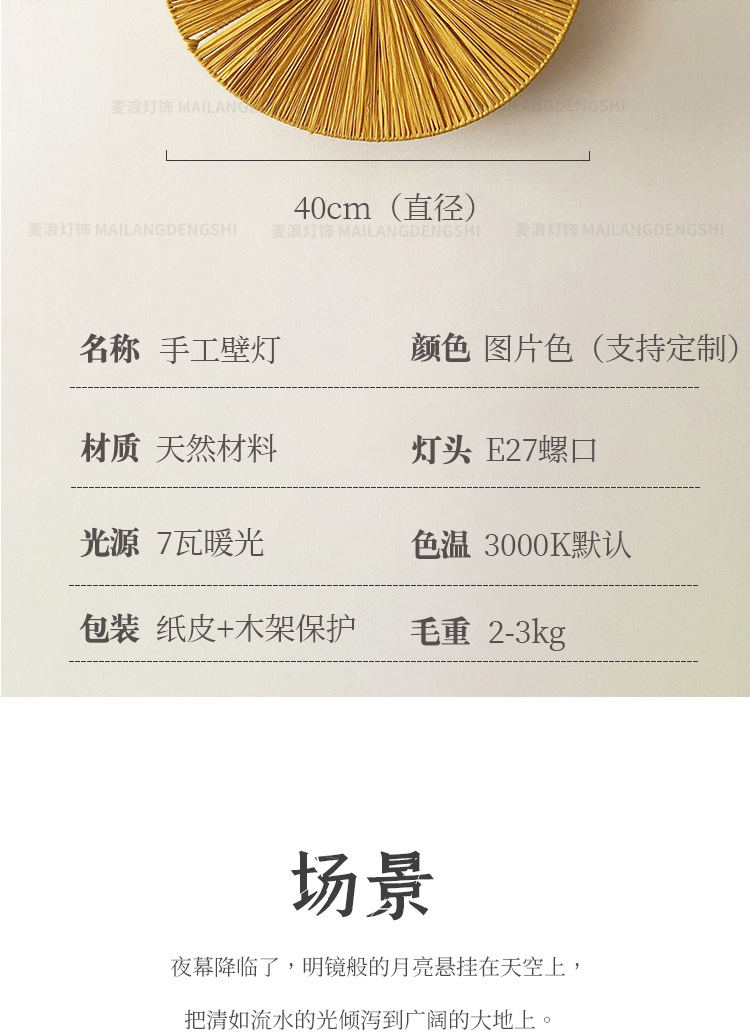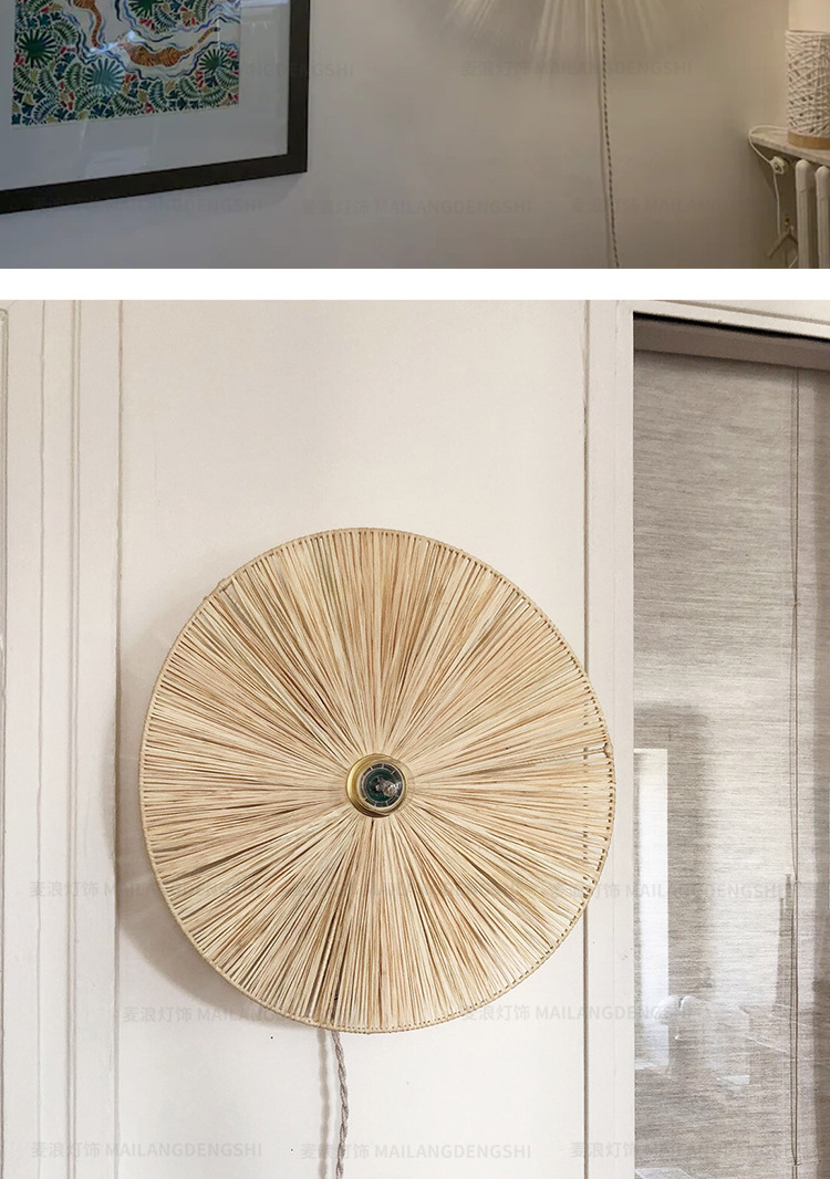 일본식 등나무 빈티지 수제 밀짚 거실 배경 벽 장식 램프 상점 복도 침실 침대 옆 벽 램프