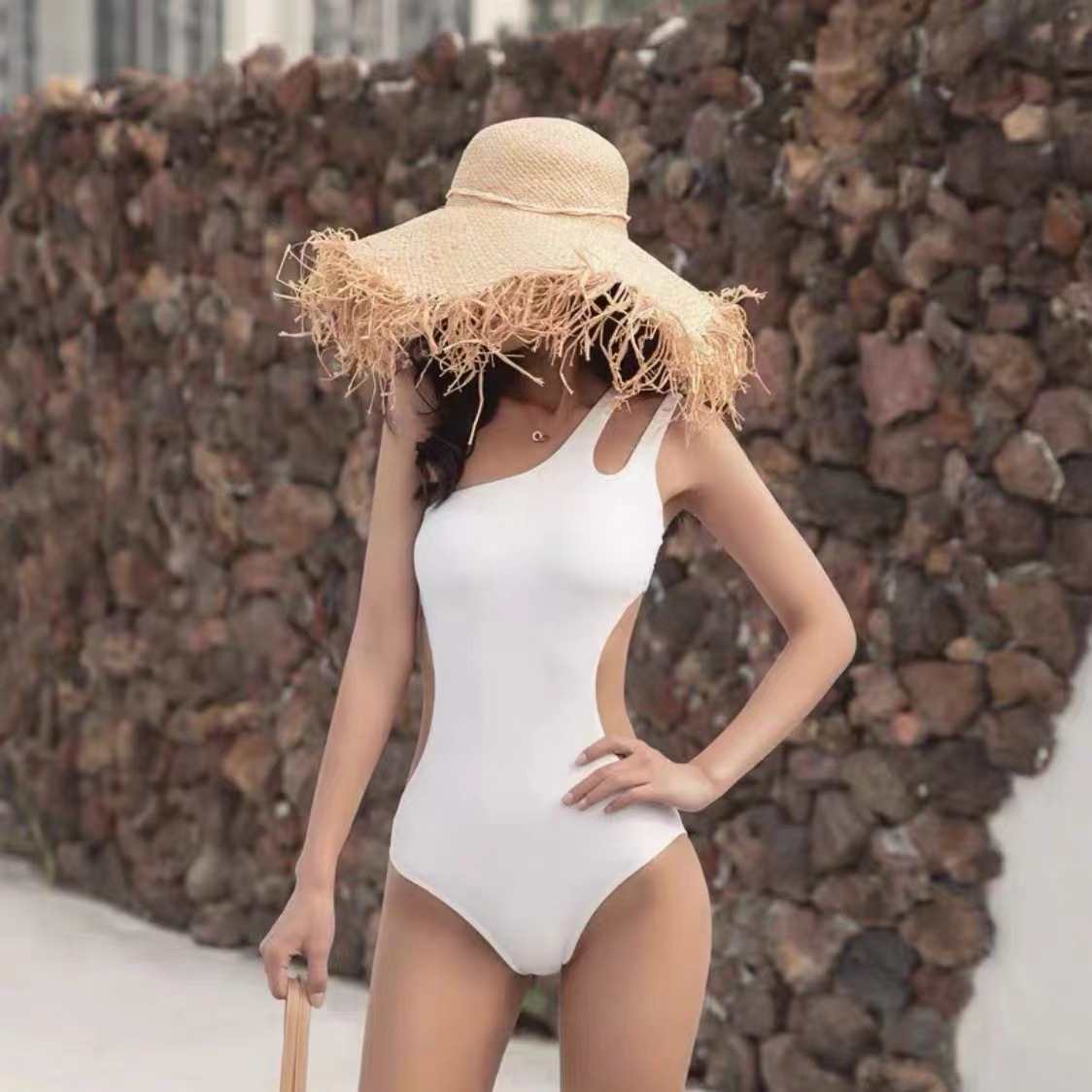 여름 수영복 여성용 2023 새로운 섹시한 빨간 책 인터넷 셀럽트 원 숄더 등이없는 슬리밍 유행 휴가 수영복스토어 가기
