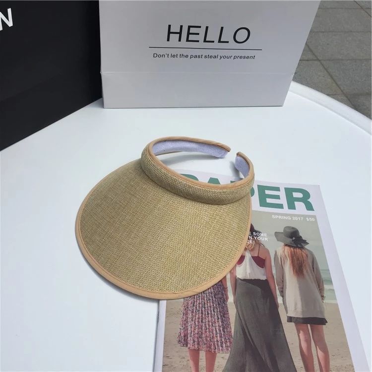 부모-자식 머리띠 클립형 차양 모자 여성용 빈 탑 모자 야외 등산 어린이를위한 린넨 자외선 차단 모자