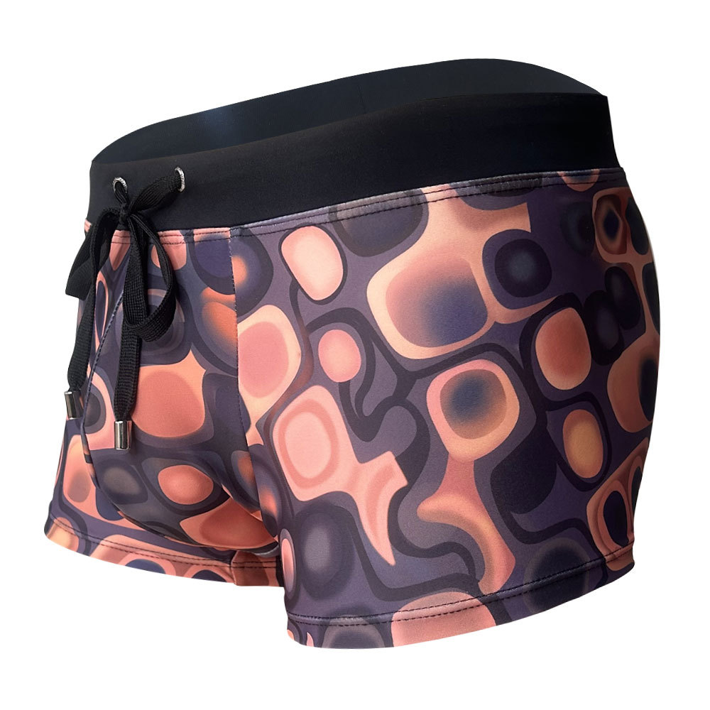 UXH 유럽과 미국의 남성 인 스타일 다크 브라운 인쇄 된 기하학적 복서 수영 트렁크 비치 복서 반바지 수영장 휴가 반바지스토어 가기