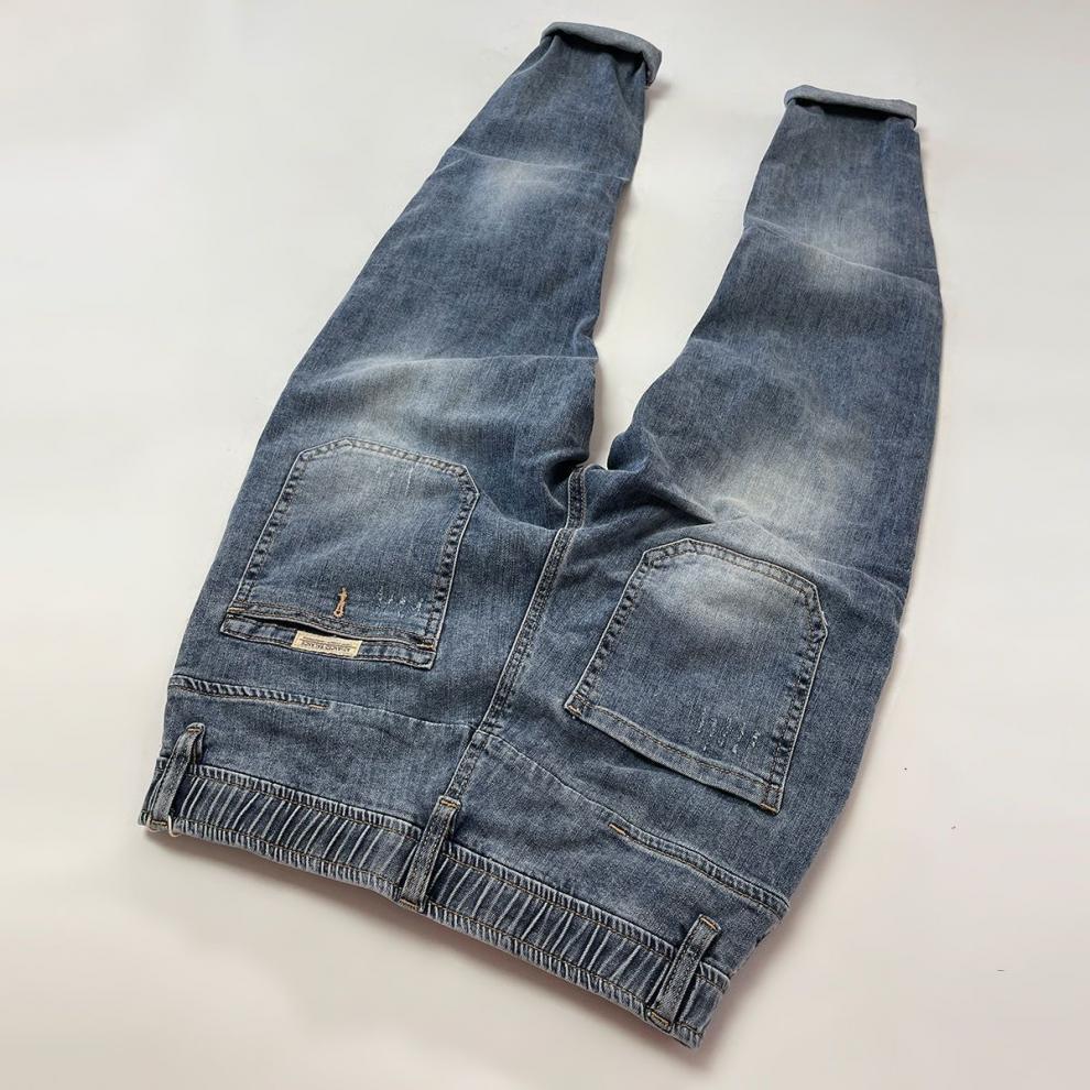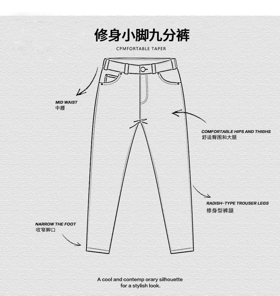 봄과 여름 크롭 진 남성 트렌디 브랜드 탄성 허리 바지 슬림핏 스트레치 하렘 바지스토어 가기