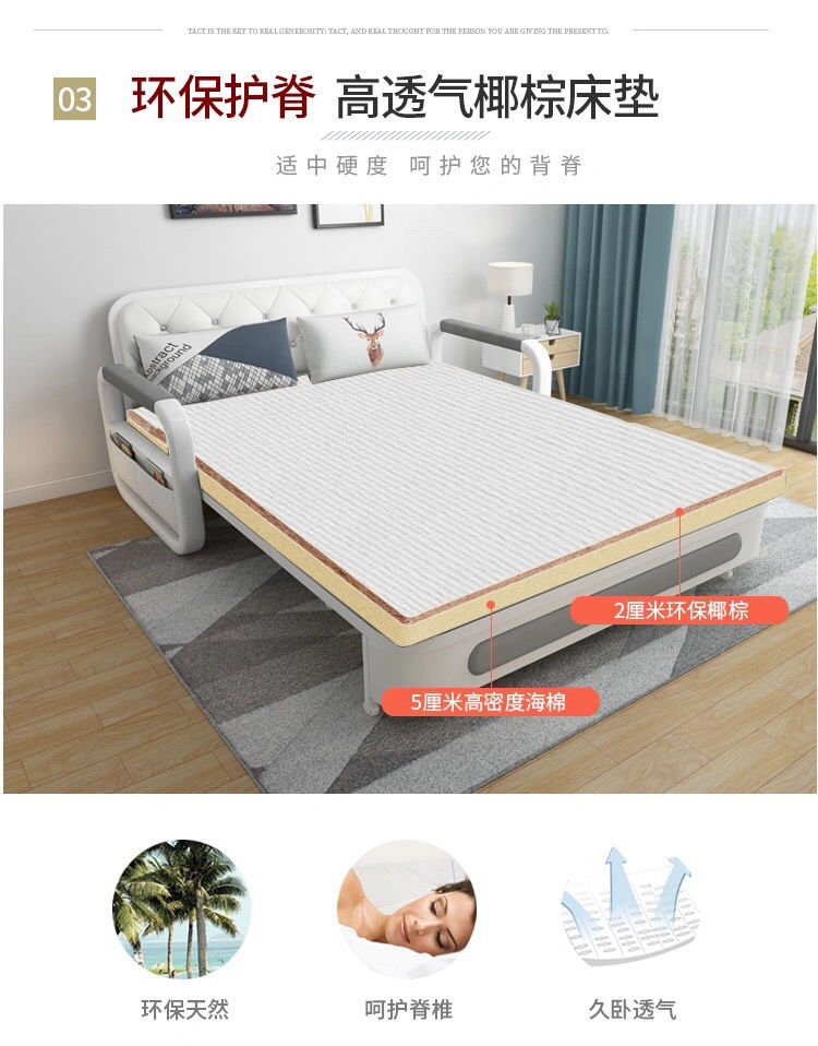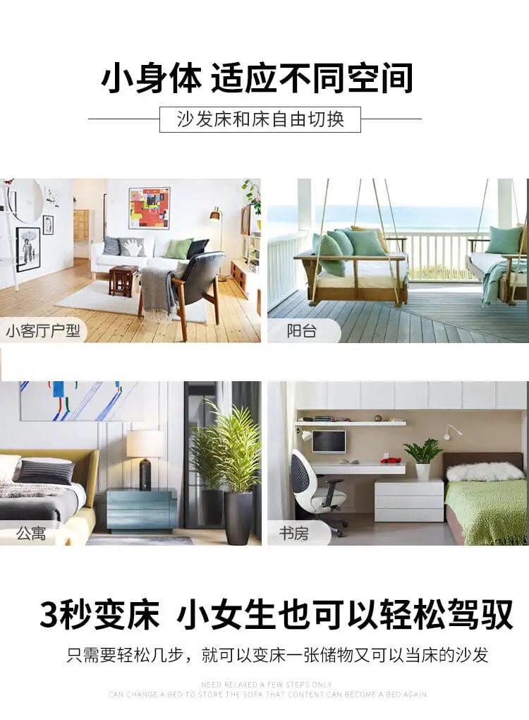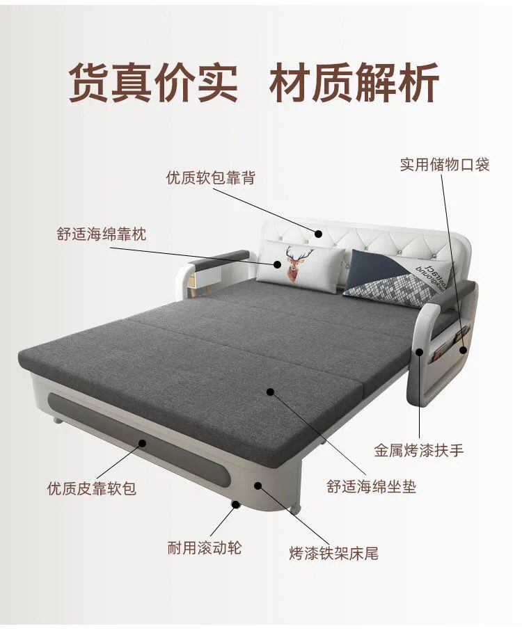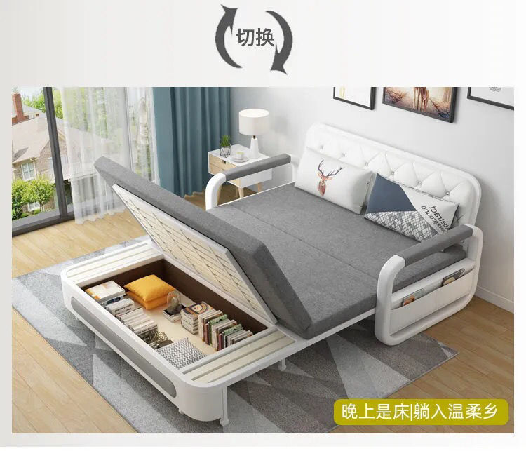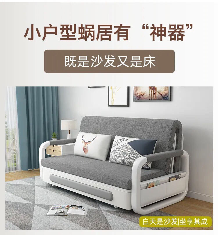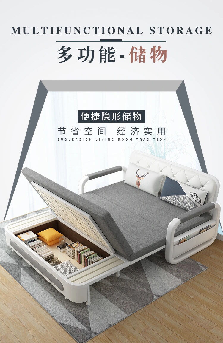 소형 아파트 다기능 접이식 소파 베드 수납 심플 모던 라텍스 이중 사용 더블 패브릭 거실