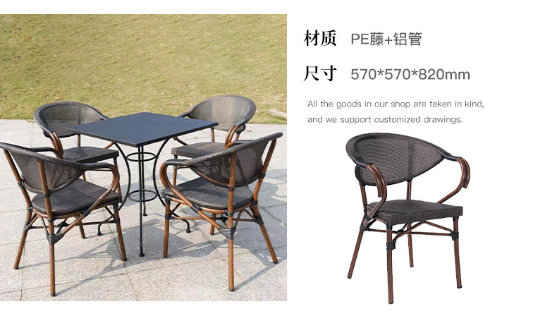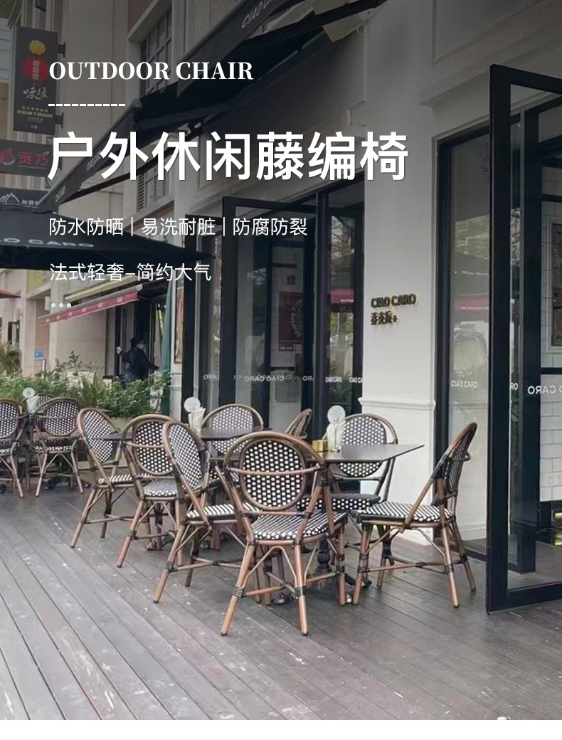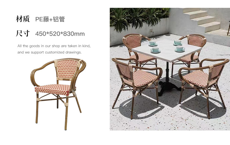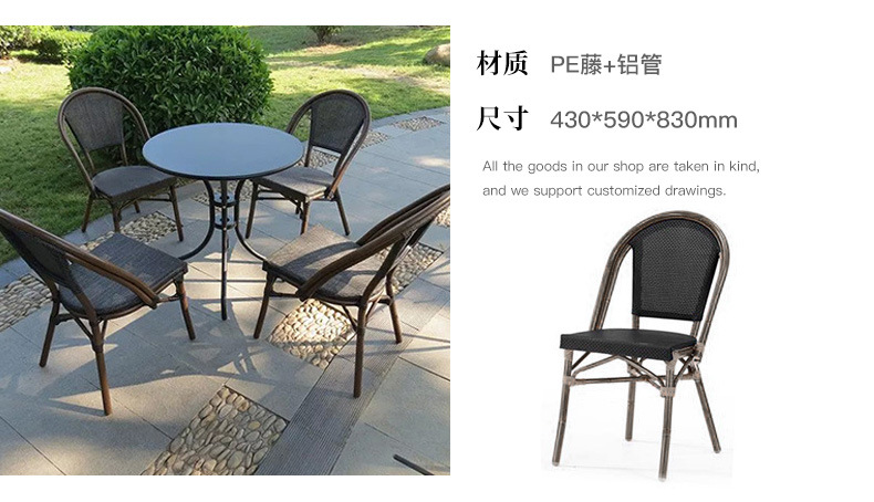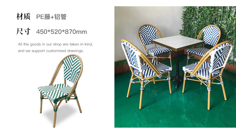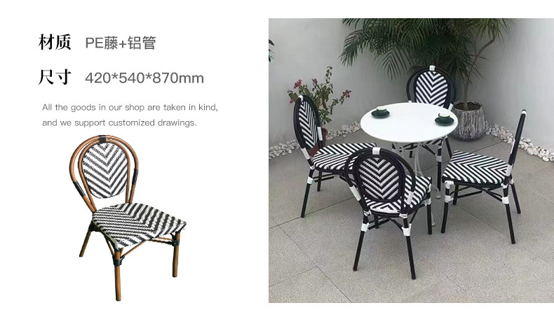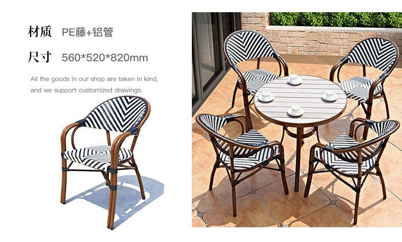 인터넷 연예인 야외 프랑스 스타일 PE 등나무 테이블과 의자 커피 레스토랑 대리석 록 보드 테이블 싱글 발코니 등나무 의자 조합스토어 가기