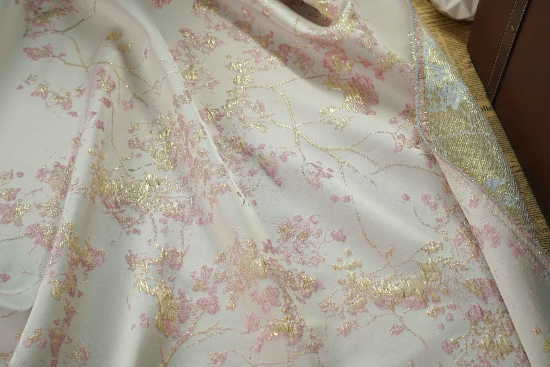 핑크 골드 엠보싱 매화 소녀풍 원피스 봄 가을 자카드 원단 약간 신축성 있는 여성용 자켓 꽃다발 장식 천스토어 가기