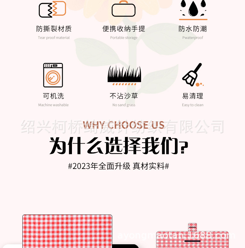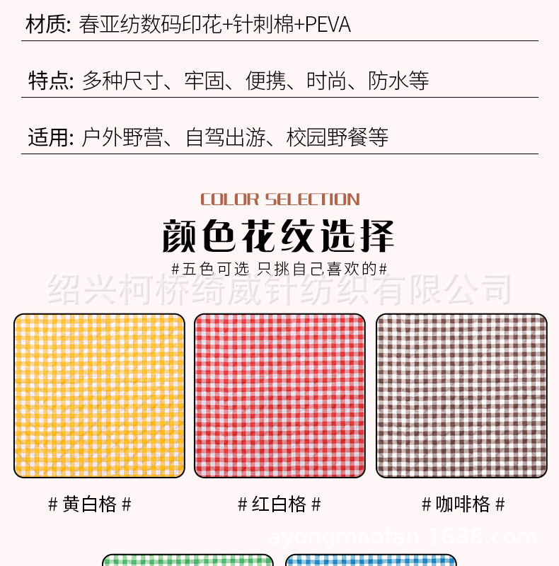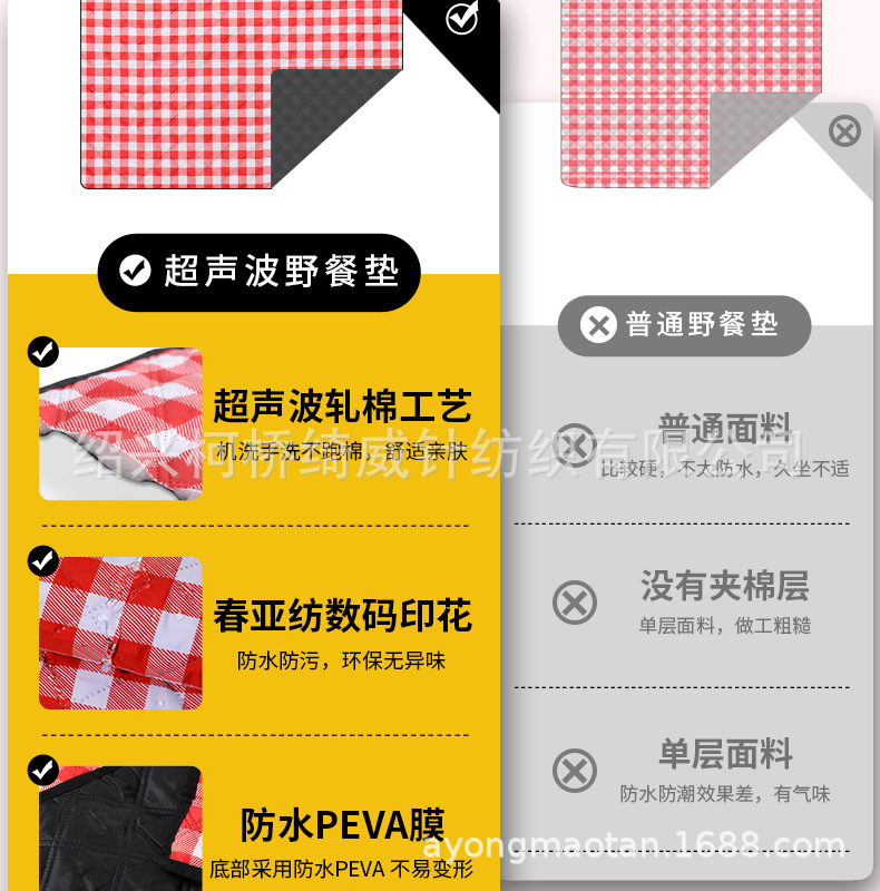 공장 재고 공급 초음파 피크닉 매트 격자 무늬 방수 방습 피크닉 매트 야외 해변 매트스토어 가기