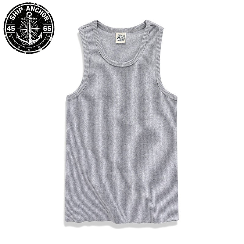 배송 닻/닻 아메리칸 레트로 300g 면 남성 여름 캐주얼 꽉 두꺼운 실 라운드 넥 조끼스토어 가기