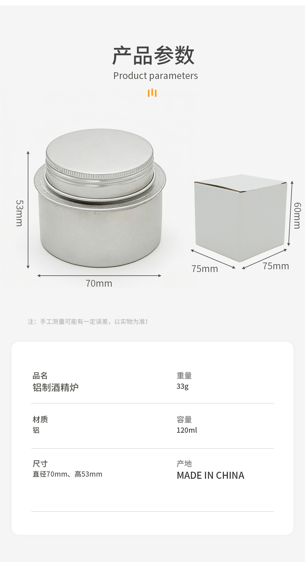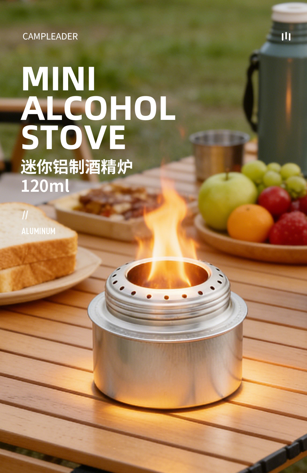 야외 미니 알코올 스토브 울트라 라이트 휴대용 스토브 알루미늄 합금 스토브 액체 고체 알코올 블록 캠핑 120ml